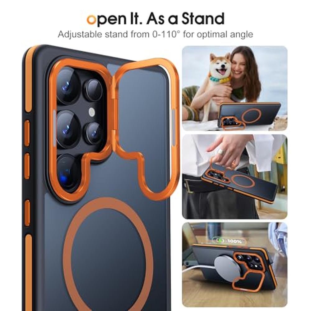 JAME for Samsung Galaxy S25 Ultra Case, [Compatible with Magsafe], [Military-Grade Protection], [with Camera Stand Guard] Shockproof Slim Fit Phone Case for Samsung Galaxy S25 Ultra Case, Orange