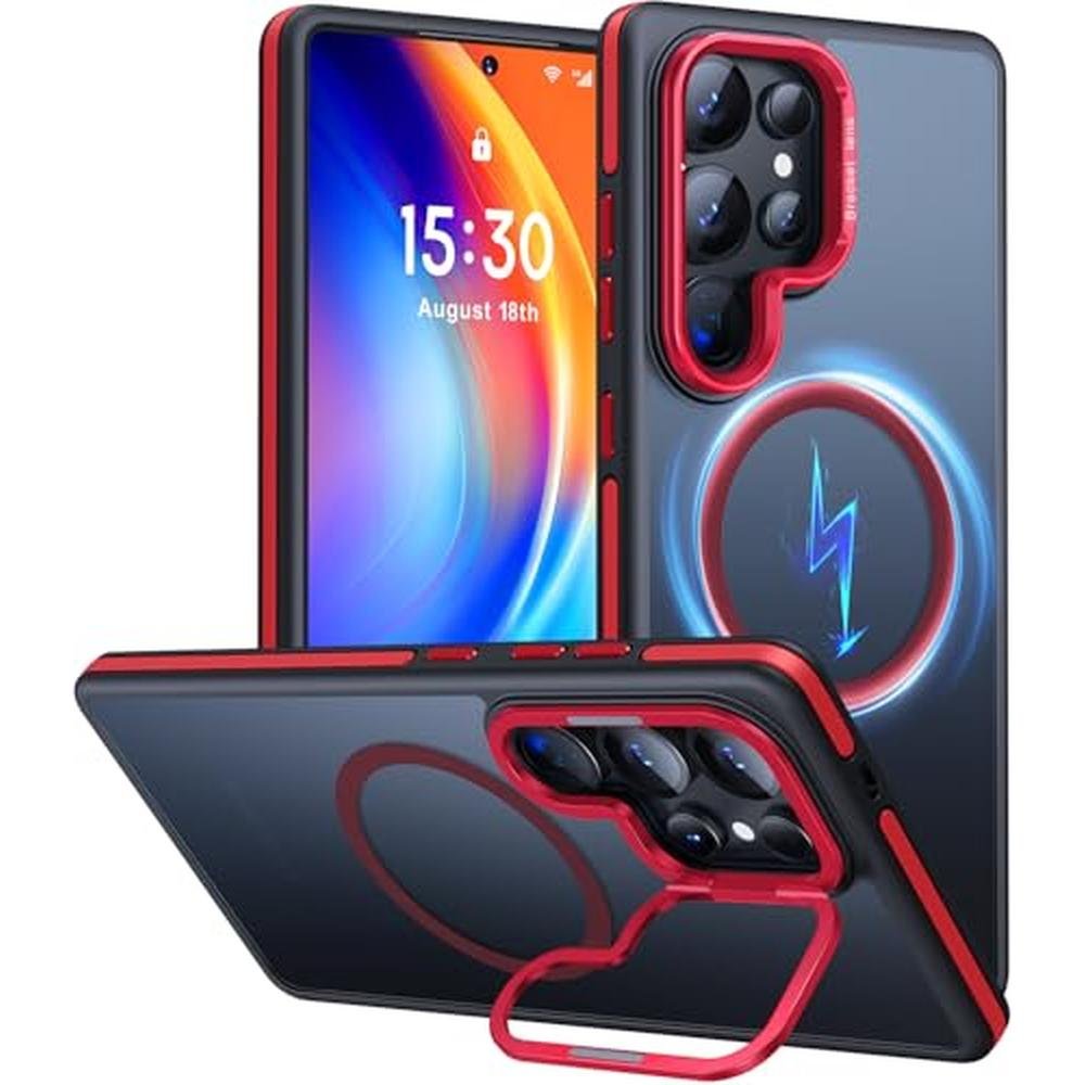 JAME for Samsung Galaxy S25 Ultra Case, [Compatible with Magsafe], [Military-Grade Protection], [with Camera Stand Guard] Shockproof Slim Fit Phone Case for Samsung Galaxy S25 Ultra Case, Red