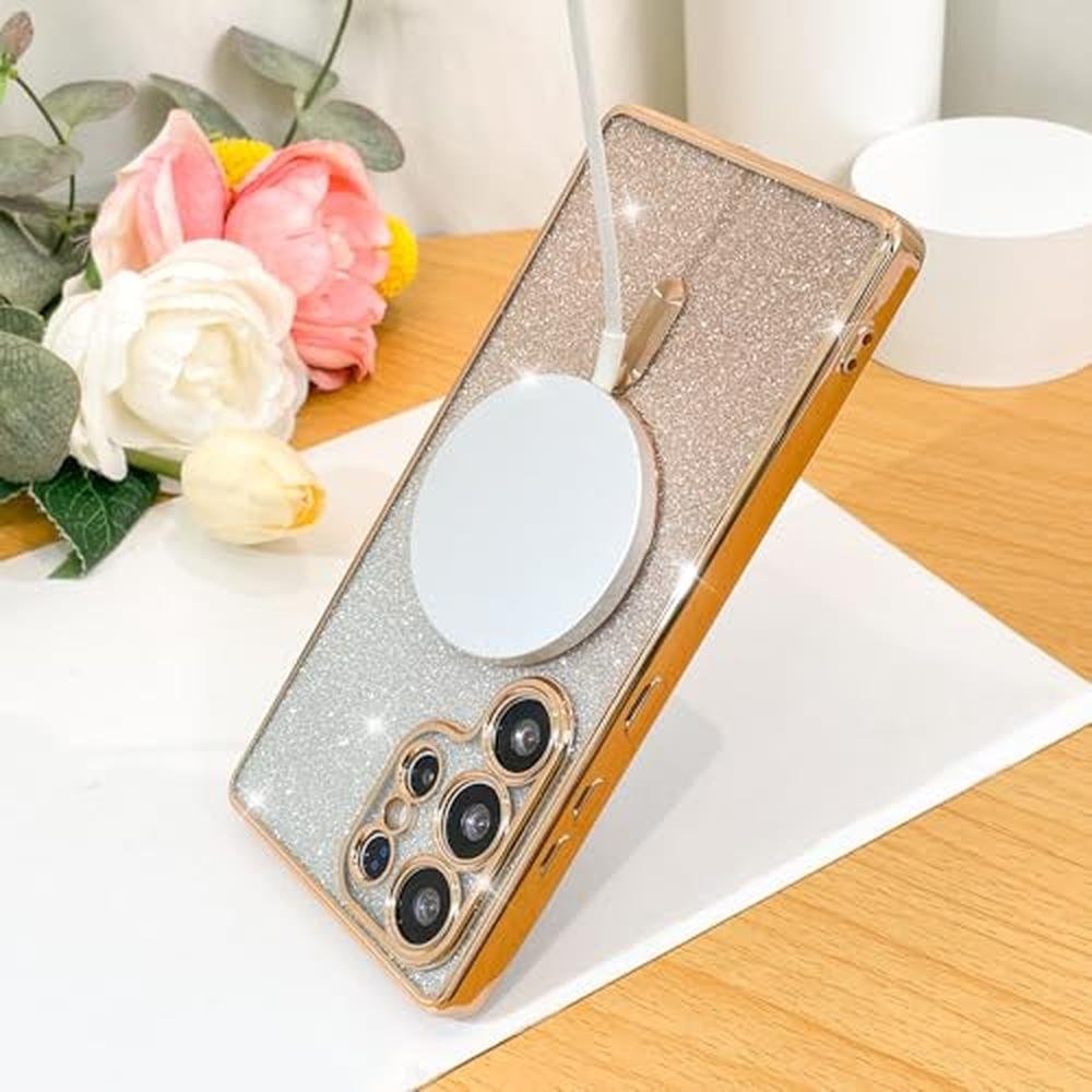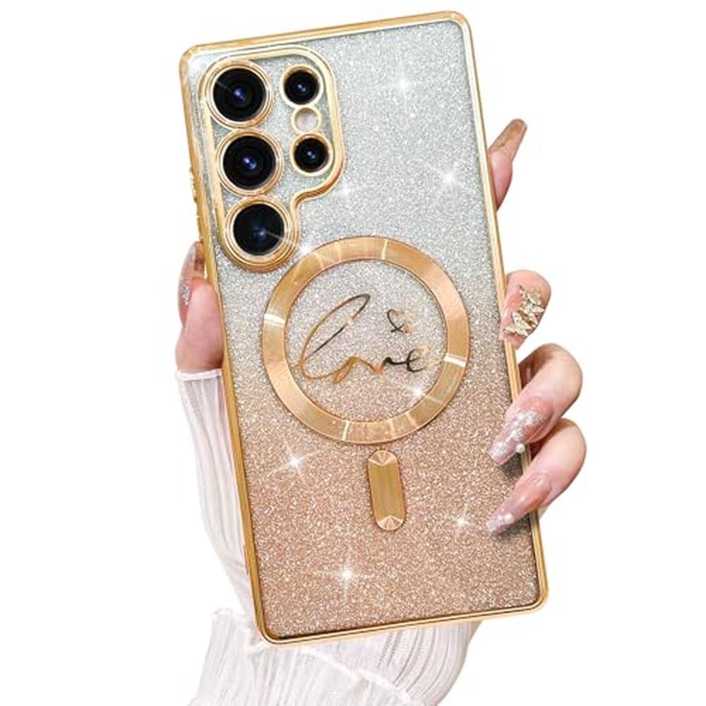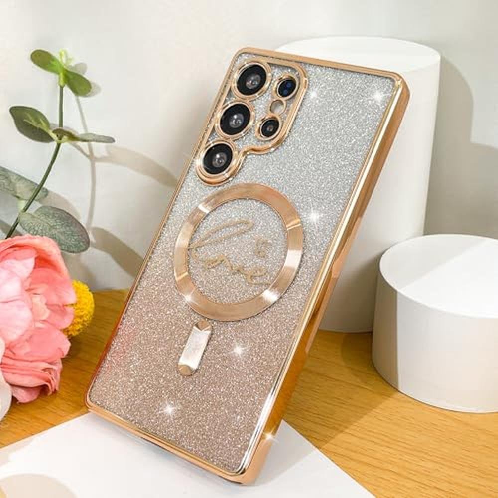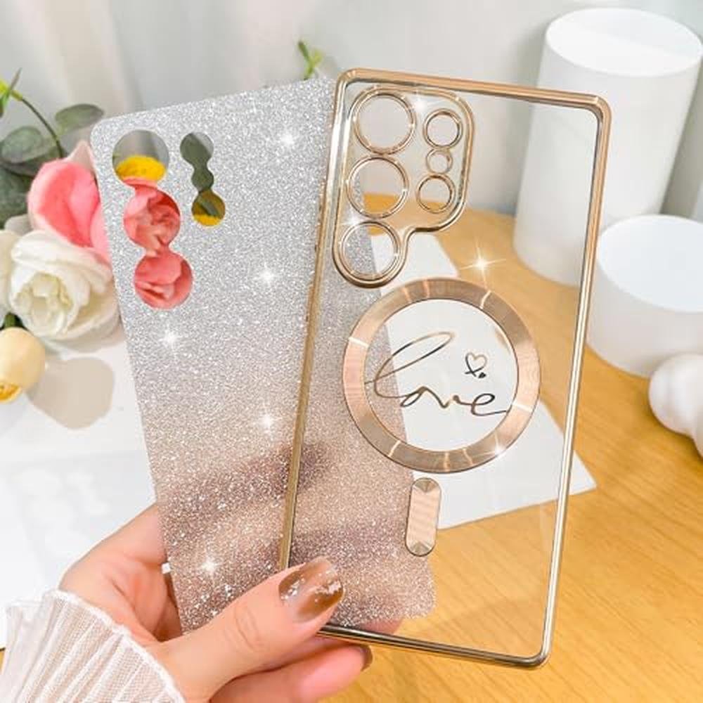 Designed for Samsung Galaxy S25 Ultra, released in 2025, not compatible with other models, please check your phone model carefully when purchasing(Supports Wireless Charging). Composed of soft TPU electroplating material, precise camera lens protection design, magnetic phone case, love heart pattern, clear, glitter paper.