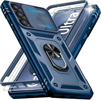 KEKBOXQ Case for Samsung Galaxy S25 ULTRA Case with Camera Cover & 2 Pcs Screen Protectors,[Military Grade 20ft.] Shockproof/360 Magnetic Kickstand Protective Case for S 25 ULTRA Blue