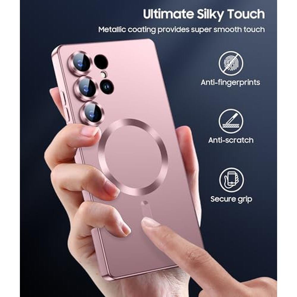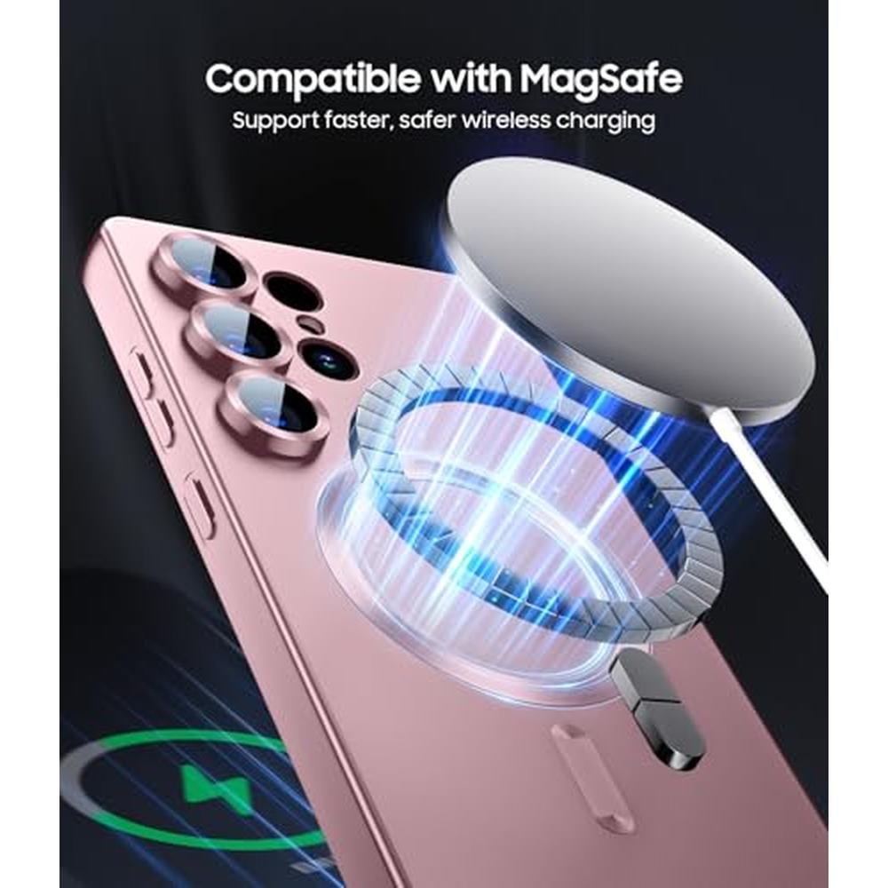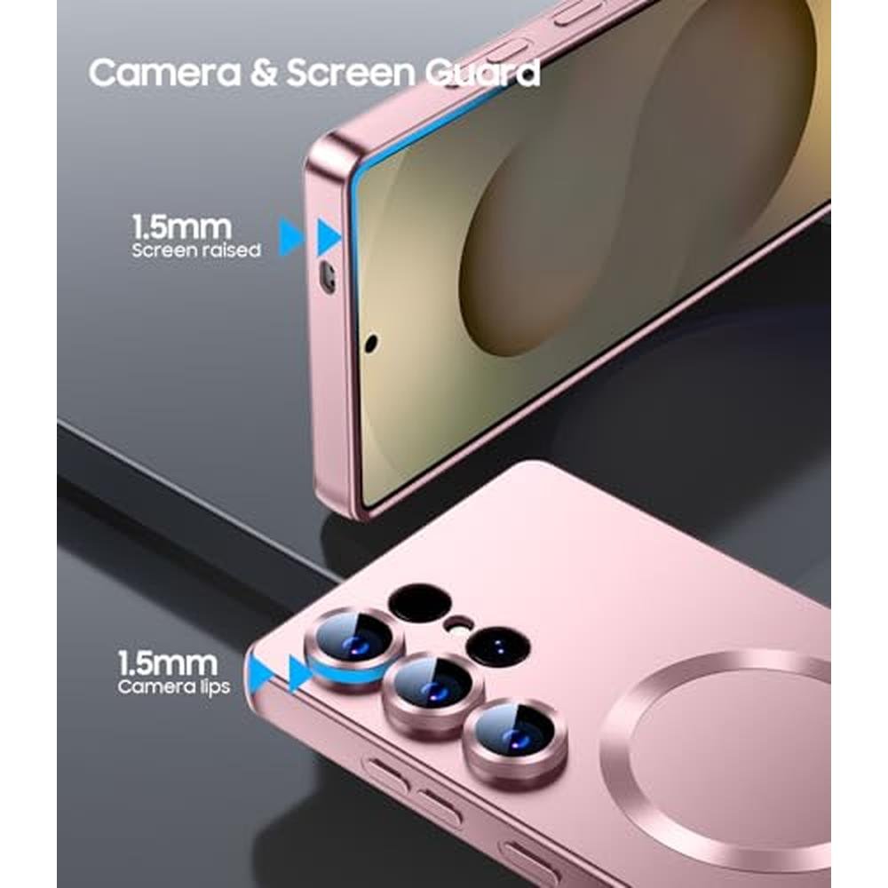 Matte for Samsung Galaxy S25 Ultra Case, Compatible with MagSafe, Slim Thin Magnetic Cover with Built-in Camera Lens Protector (Removable) Shockproof Phone Shell, Rose Gold