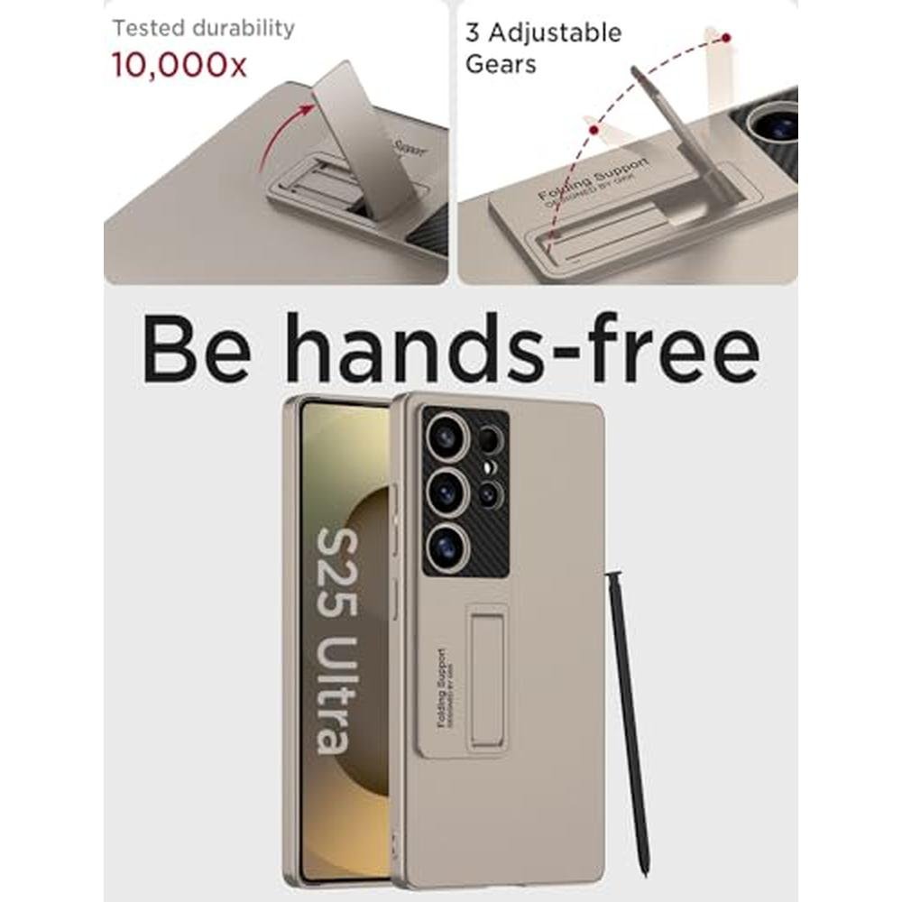 • Built-in Mechanical Shift Bracket- 3 Stand ModesThe s25 ultra case with stand has a built-in adjustable stand for multi-angle standing. By setting the phone case samsung s25 ultra at any Angle between 55- 70 so that you can comfortably watch videos or conduct business meetings, this s25 ultra case slim can be integrated into every scene of your life.