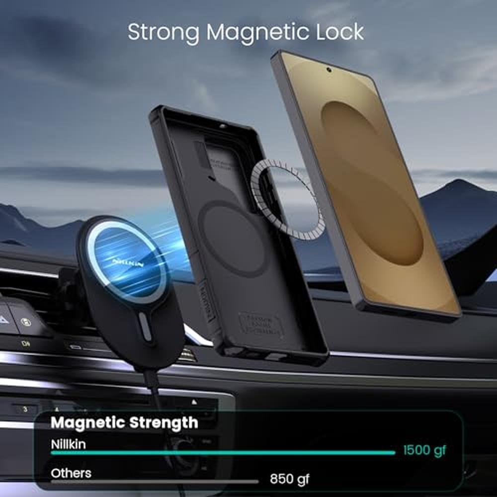 Nillkin Magnetic for Galaxy S25 Ultra Case, Compatible with MagSafe, Military-Grade Case with Camera Cover & Kickstand, Heavy Duty Magnetic Phone Case for Samsung Galaxy S25 Ultra, Black