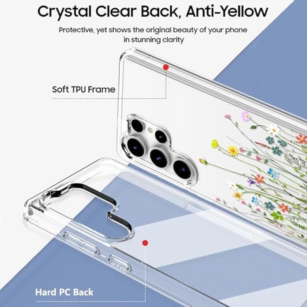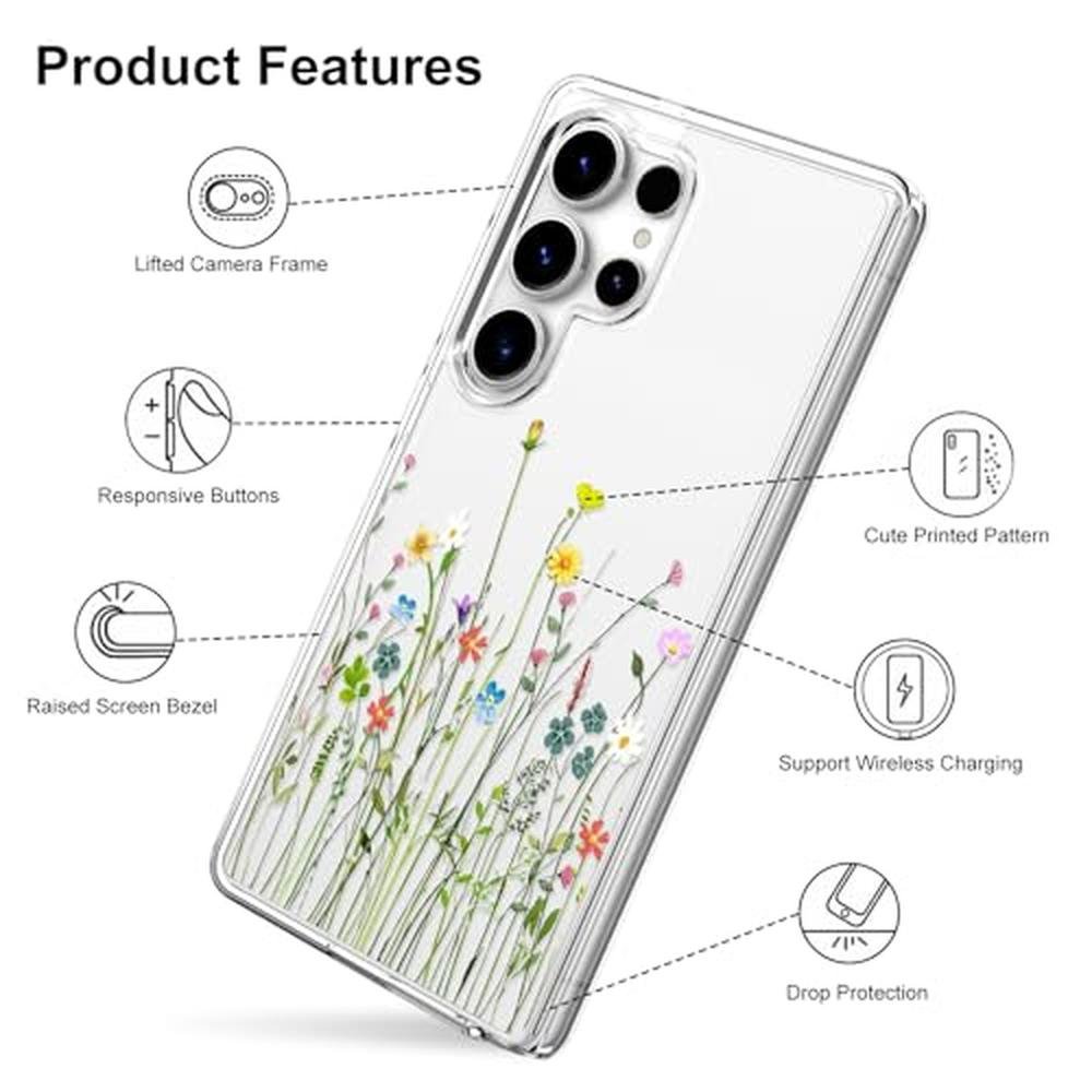 OOK Magnetic for Samsung Galaxy S25 Ultra Case Wild Flowers Floral Design Clear Case with Full Camera Lens Case for Samsung Galaxy S25 Ultra Phone Case, Wild Flower (6.9")