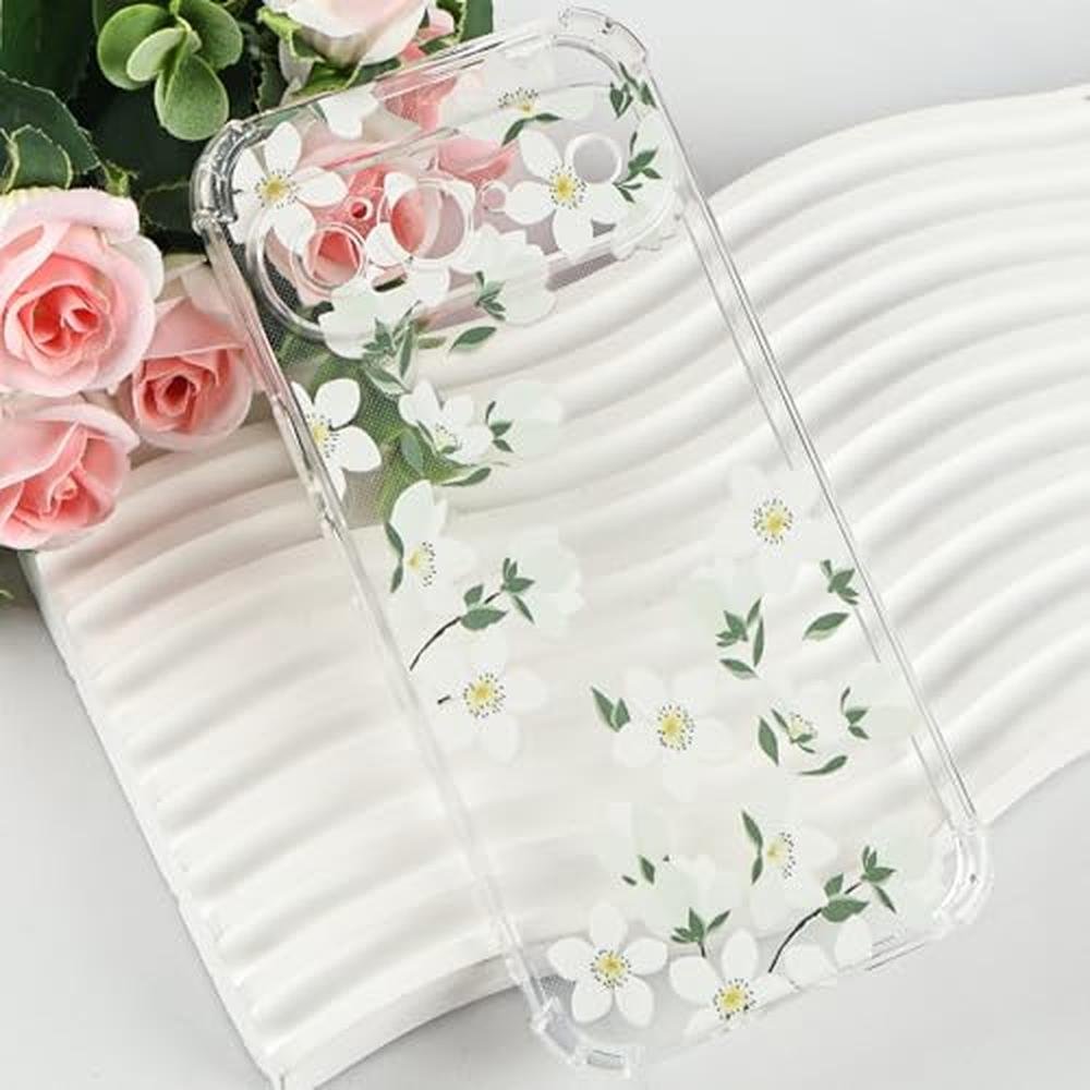Tcaraersing for Google Pixel 9 Case Clear with Flower Pattern, Upgraded [Full Camera Protection] Shockproof Bumper Corner Transparent Soft TPU Slim Floral Cover for Girls Women, White Flowers