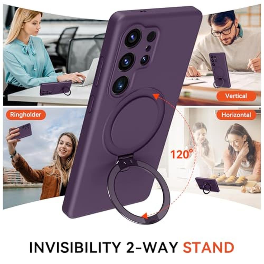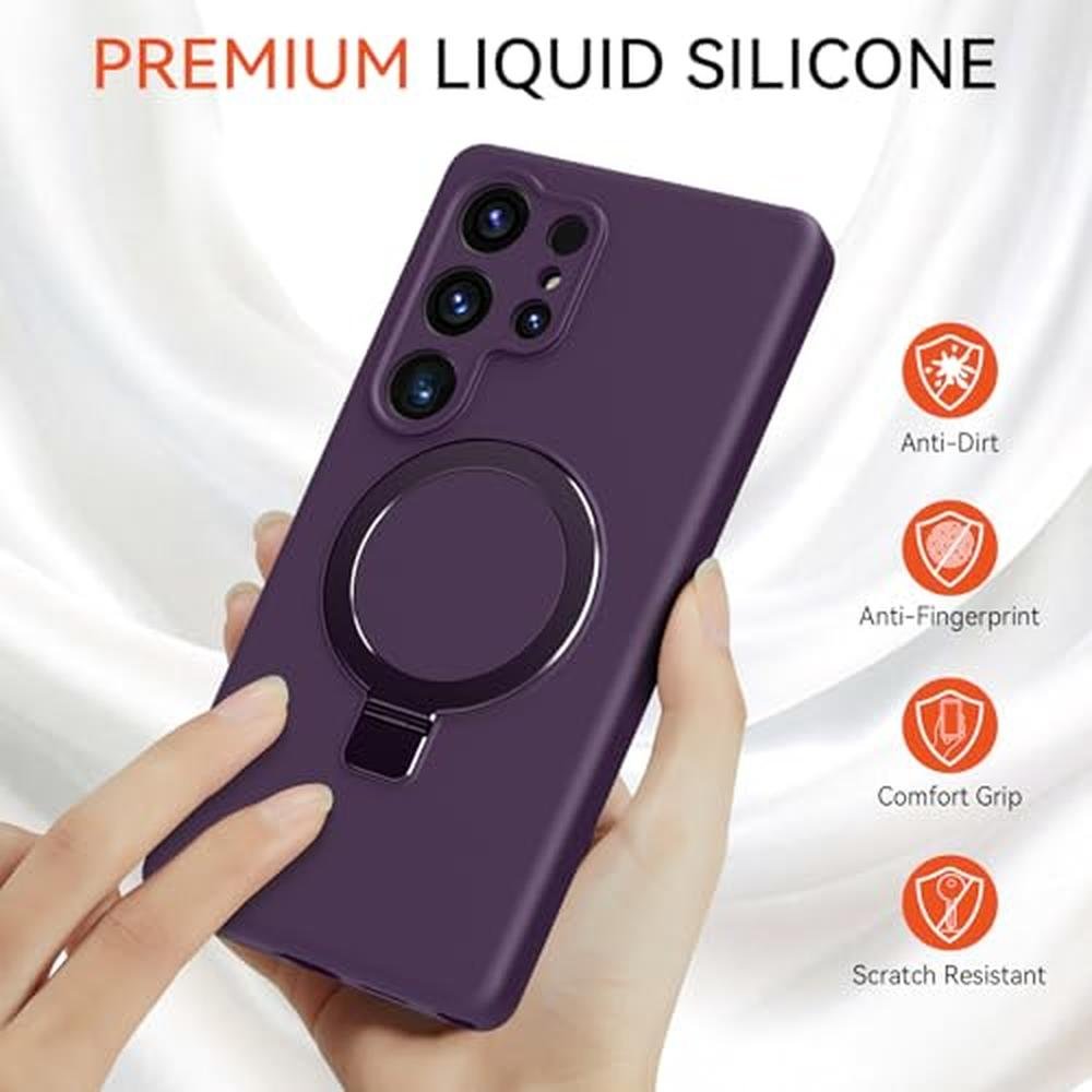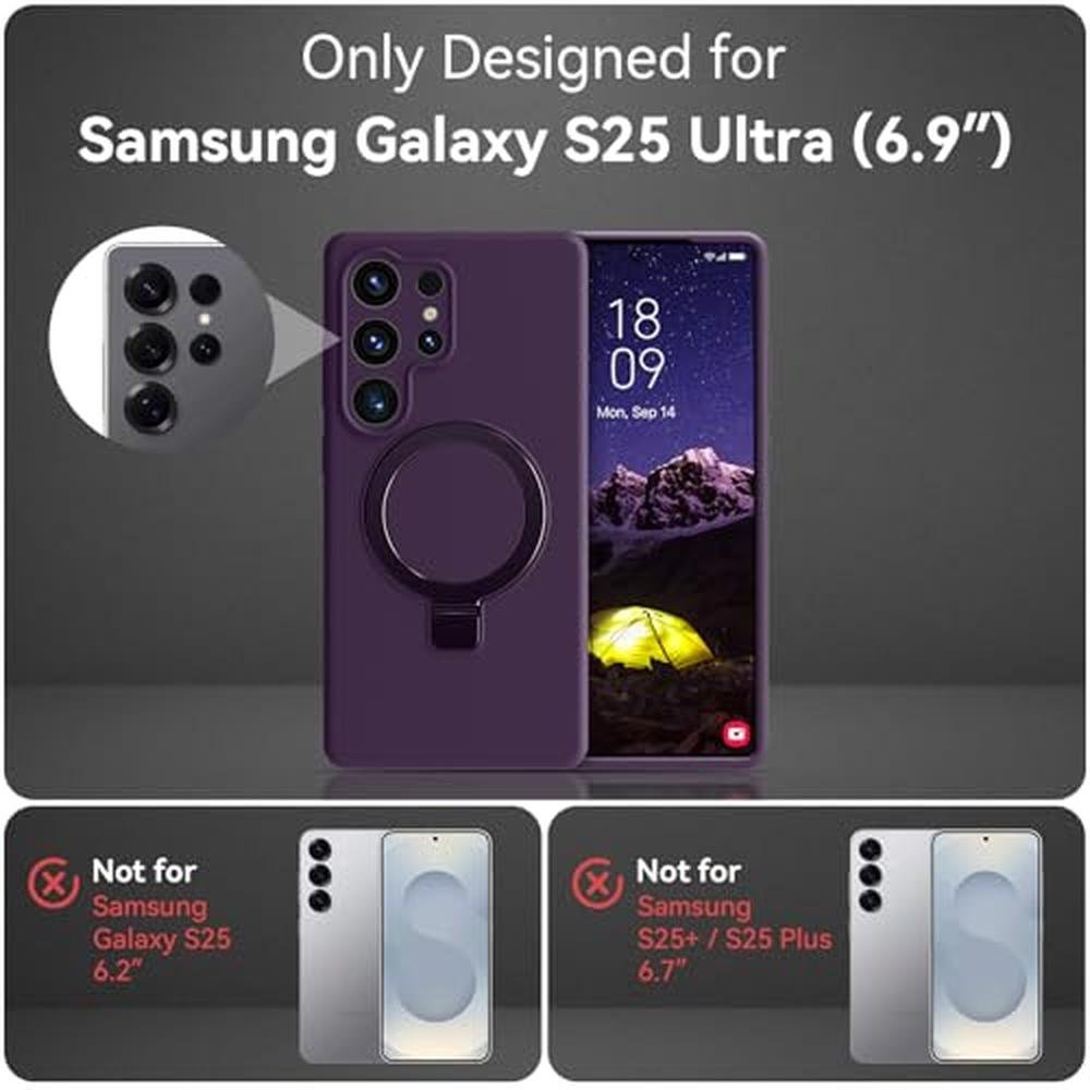 Vanxiliiy for Galaxy S25 Ultra Case with Stand, Slim Liquid Silicone Phone Cases for Samsung Galaxy S25 Ultra Compatible with MagSafe Magnetic Ring Kickstand Case Full Camera Protection, Dark Purple