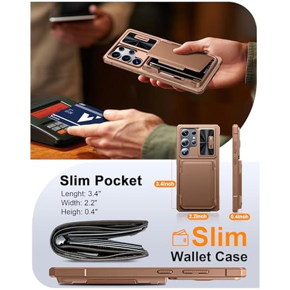 - [CARD HOLDER DIMENSIONS] We kept the dimensions of our s25 ultra case card holder slim wallet to 3.4" x 2.2" x 0.17". It will fit in your pocket perfectly without bulging out. the samsung galaxy s25 ultra wallet case with edge raised protection, when your galaxy s25 ultra phone falling, case edge raised screen & camera lens cover protect and built-in safety anti-shock pads inside, card holder cards will not falling out