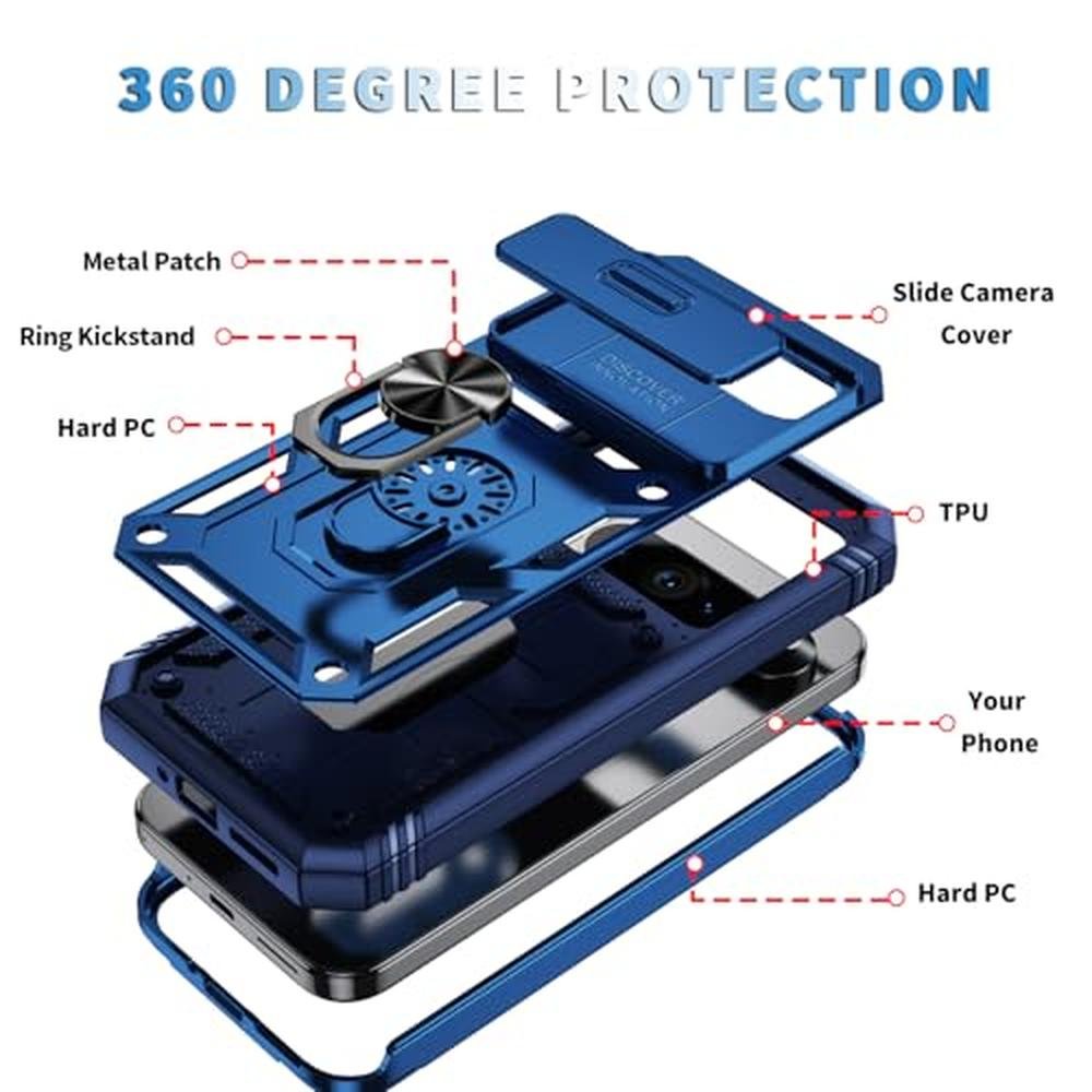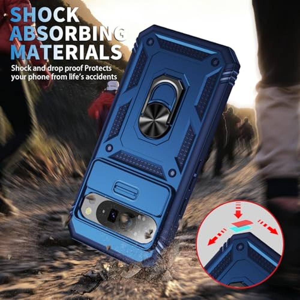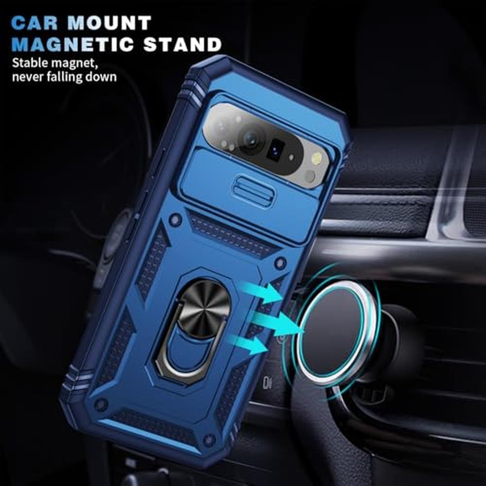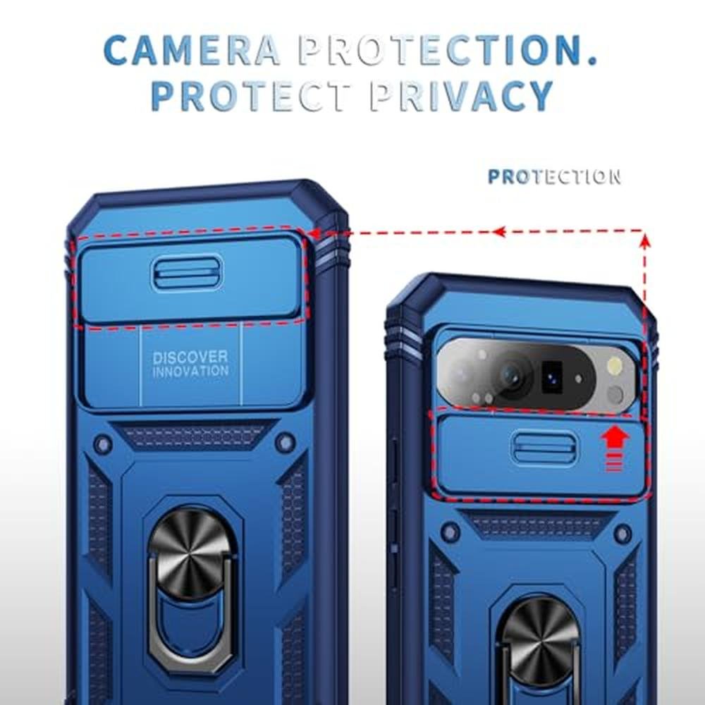 WMYUHAN for Google Pixel 9 Pro XL Case Military Grade Drop Shock Protection Cell Phone Cover with Slide Camera Cover Built-in 360 Rotate Ring Stand for Pixel 9 Pro XL 6.8 -Blue