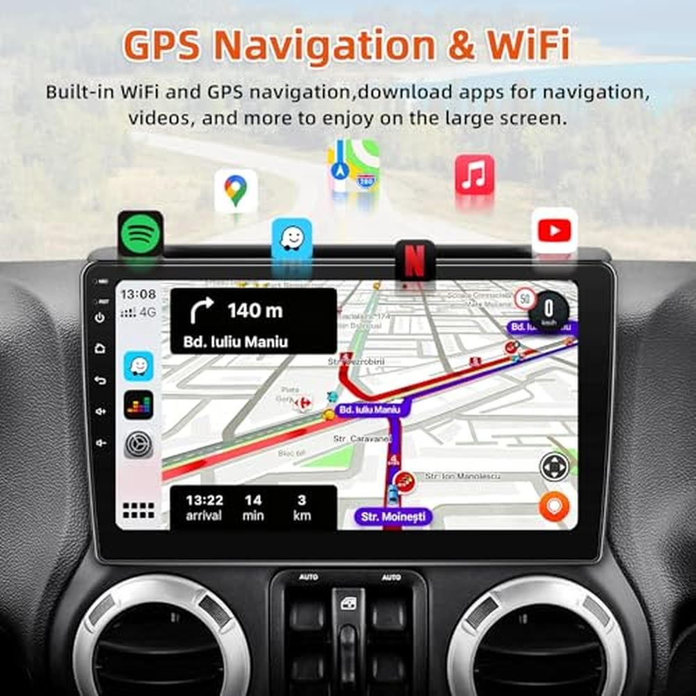 Car Radio Android | Jeep Wrangler JK 2007-2018 2+64G Android 13 Touch Screen Radio | Wireless CarPlay Android Auto Bluetooth GPS Navigation