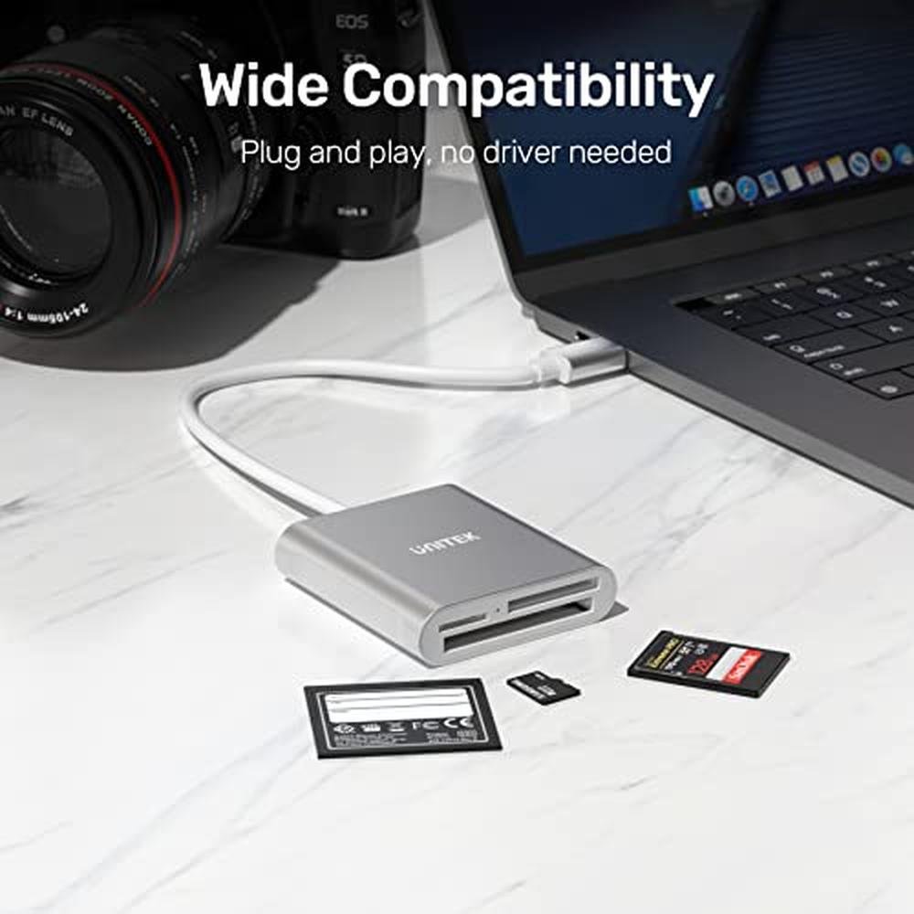 - Supports a wide range of memory cards, including CF, SD, TF, Micro SD, Micro SDHC, MD, MMC, SDHC, and SDXC UHS-I cards