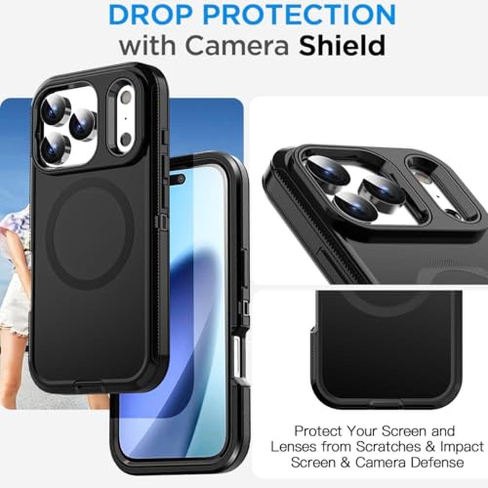 - [20FT MILITARY-GRADE DROP PROTECTION] -DROP + 4X TESTED MILITARY STANDARD ( MIL-STD-810G 516.6 ),Multi-layer Defense Heavy Duty Protection,Shockproof from Accidental Damage.Safely guard your iPhone 17 Pro Max from serious drops, dirt, scrapes and bumps, absolutely the best case for durability and heavy duty protection.