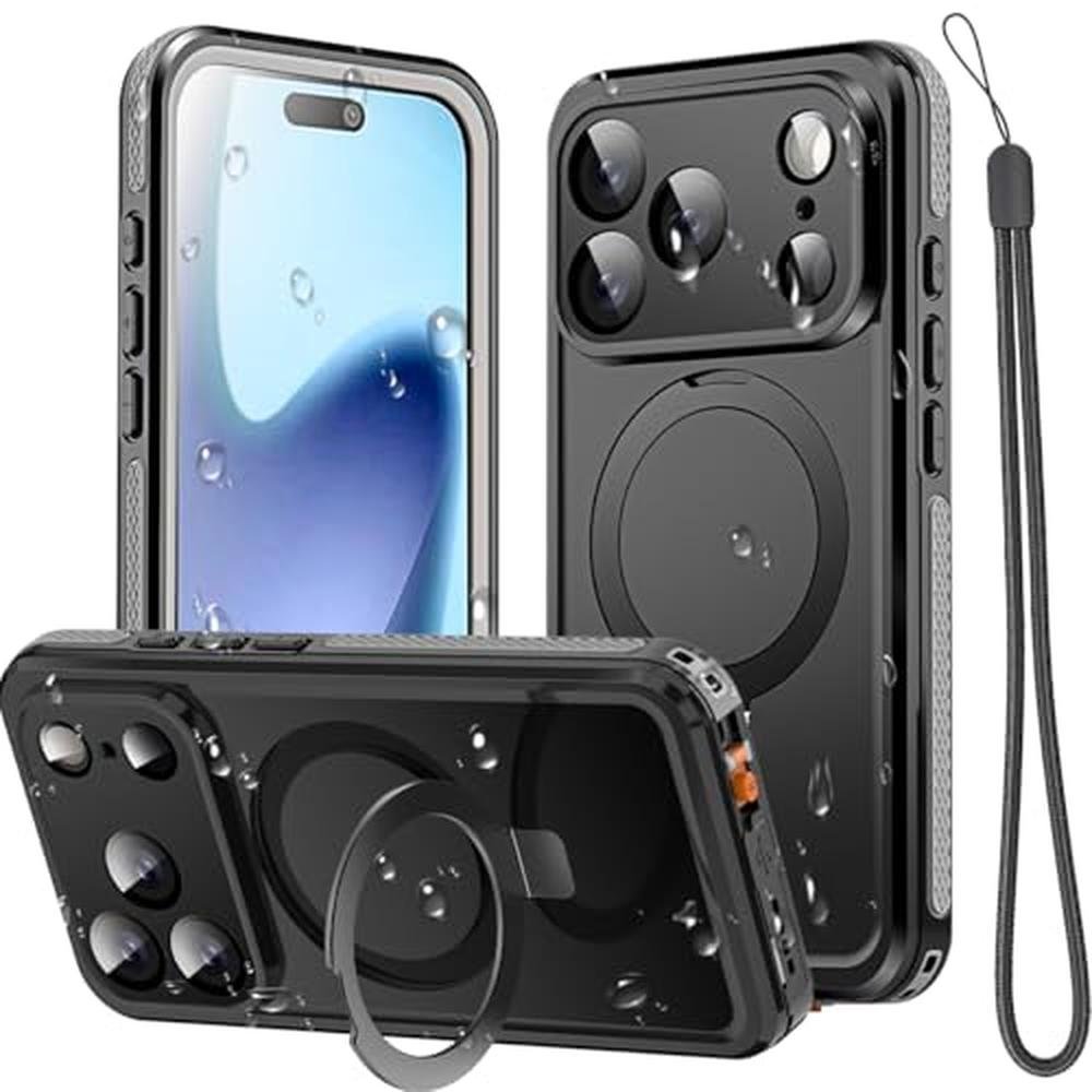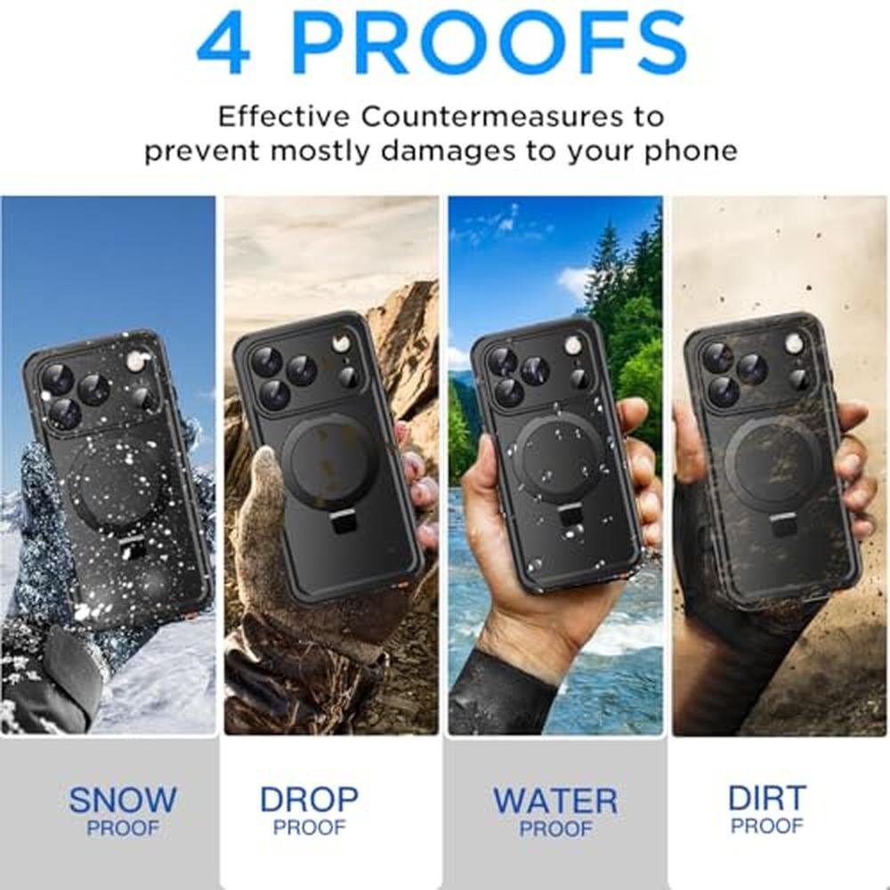 Special features | IP68 Waterproof,Snowproof Dustproof Case,Built-in Magnetic Ring Invisible Kickstand, Built-in Screen & HD Camera Protector,Anti-drop Protection, 360 Full Body Protection,Compatible with Magsafe,Designed with cell phone holder,100% passed the waterproof quality test |