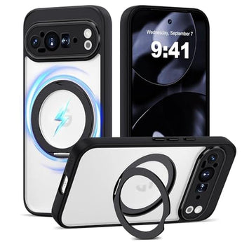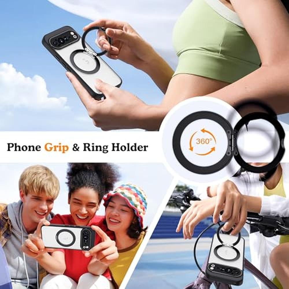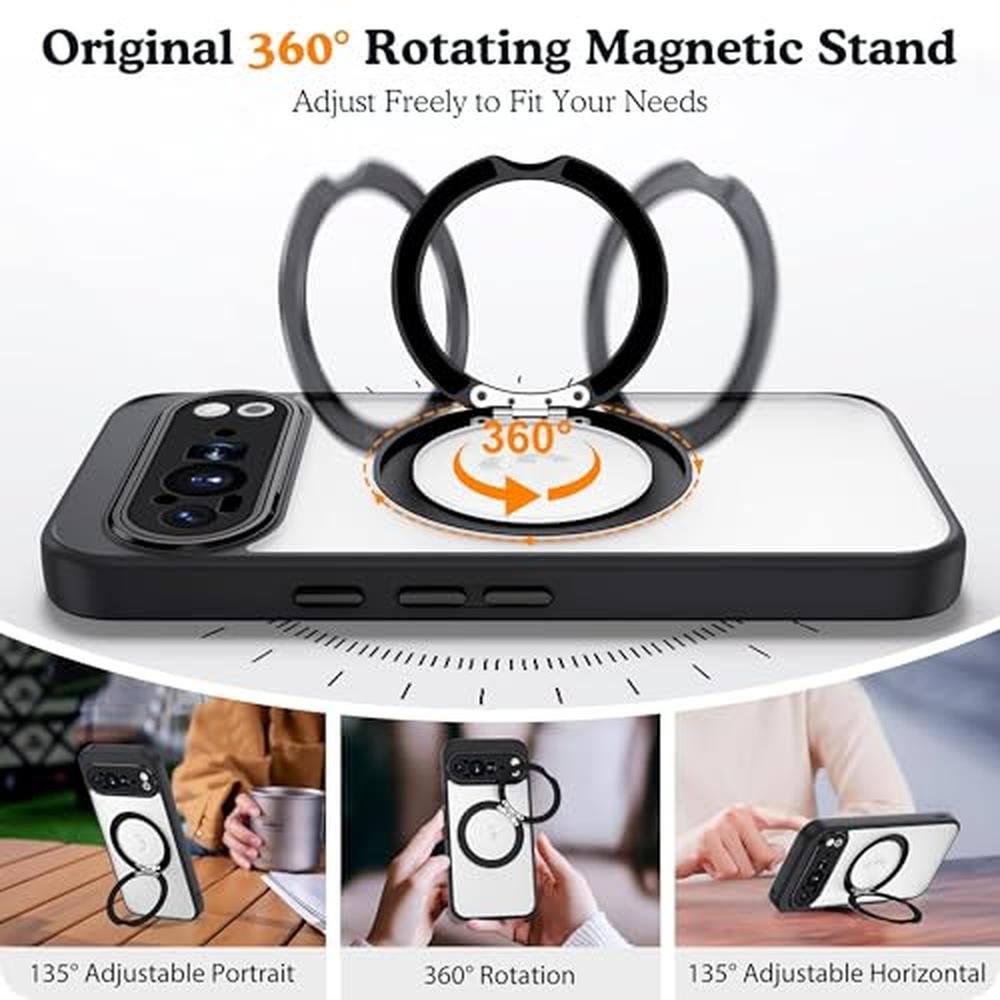 AmoraAqua Compatible with Google Pixel 9 Case with 360 Magnetic Ring Stand [Compatible with Mag-Safe ] Shockproof Translucent Phone Case for Google Pixel 9 6.3 inches,Black