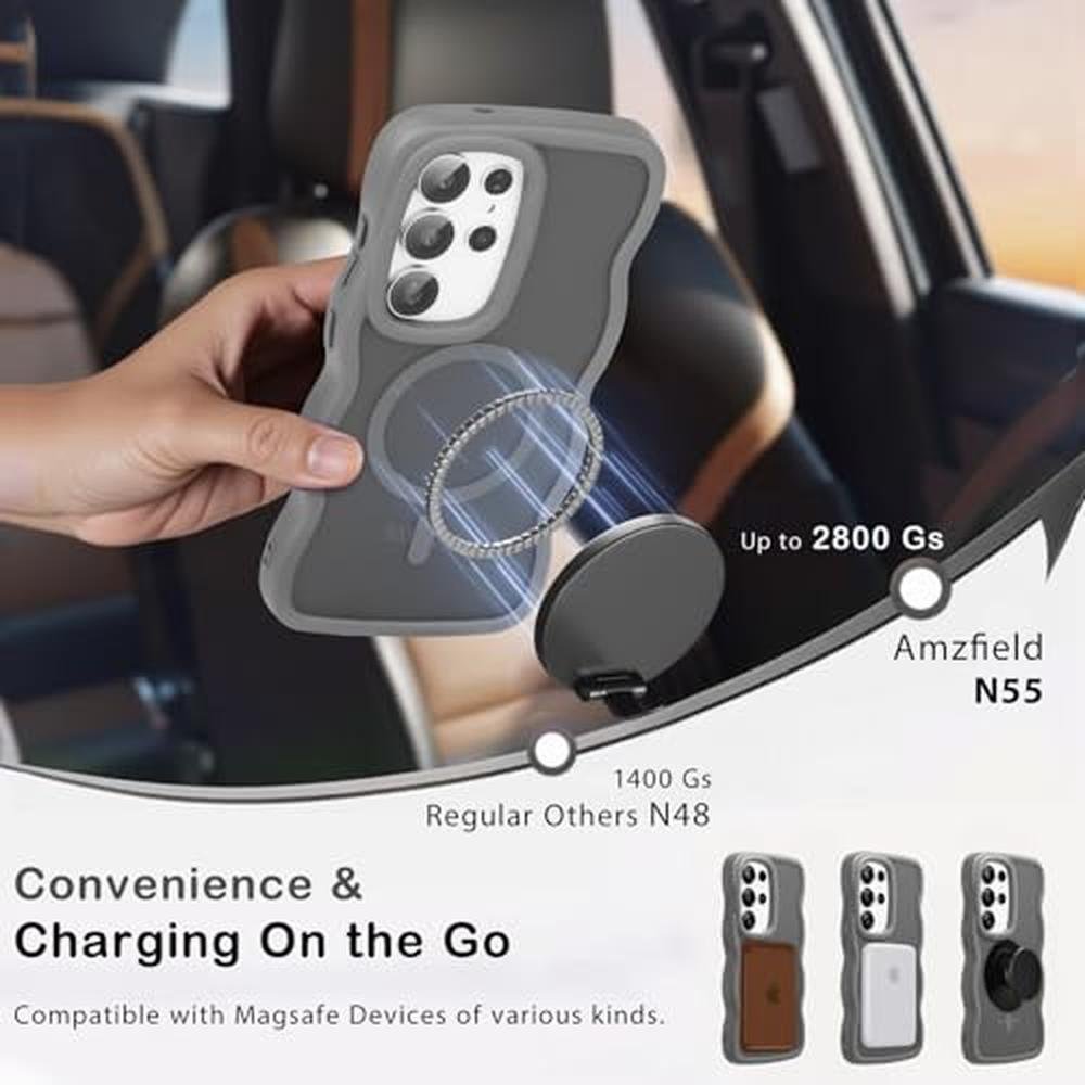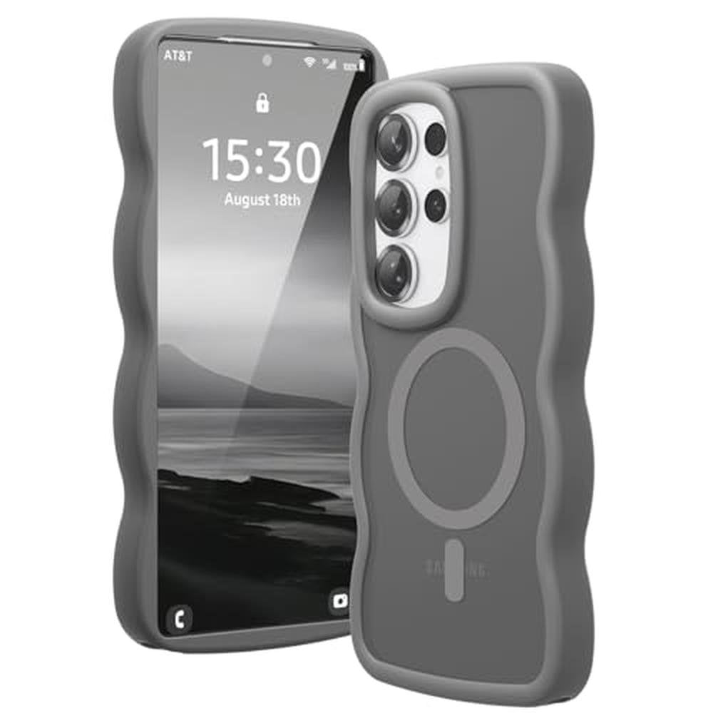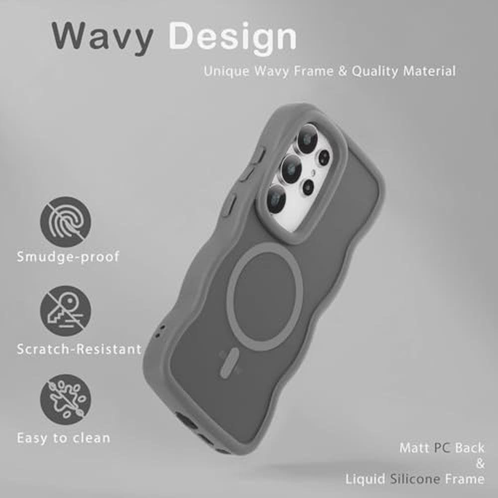 Amzfield for Samsung Galaxy S25 Ultra case Compatible with Magsafe Wavy Cute Design Magnetic Translucent Matte Hard Back Silicone Bumper Protective Phone Case for S25 Ultra Women Girls, Grey
