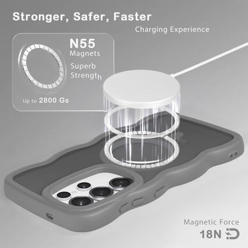 Translucent Matte Phone Case with Wave Frame Wireless Charging Friendly Hybrid DesignElevate your device with our premium translucent matte phone case, combining style and superior protection. The ultra-durable hard PC backplate maintains Translucent Quality to subtly showcase your phone's original color while resisting scratches and yellowing. Surrounding the edges, flexible TPU material features a unique wave-textured design for enhanced grip and shock absorption against drops.Engineered for modern convenience, this hybrid case, embedded with Powerful N51 Magnets, supports hassle-free wireless charging (Qi-certified compatible) without removing the case. Precision-cut openings provide full access to all functions while maintaining a slim, lightweight profile. Available in multiple on-trend translucent color options to match your personal aesthetic.Why You'll Love It: True Translucent Matte Finish Shows off your phone's color while preventing fingerprints Hybrid Protection Hard PC back + soft TPU wave edges for 360 defense Super Magnetic Strength Worry-free Charging Experience, Easy Charging in all circumstances. Ergonomic Wave Design Textured edges prevent slips without bulk Multi-Color Selection Choose your perfect translucent shadeIdeal for users who demand both visual appeal and reliable everyday protection!
