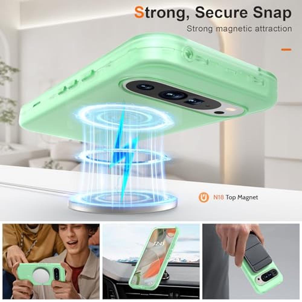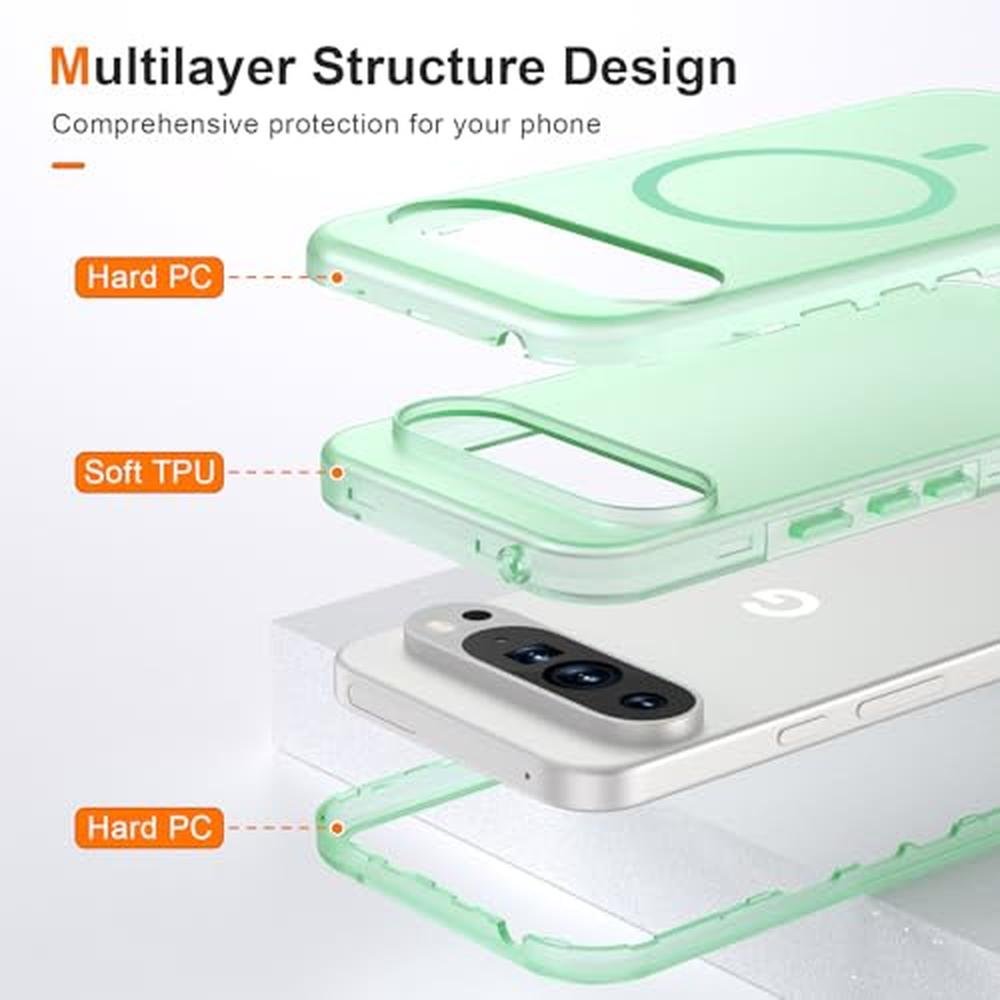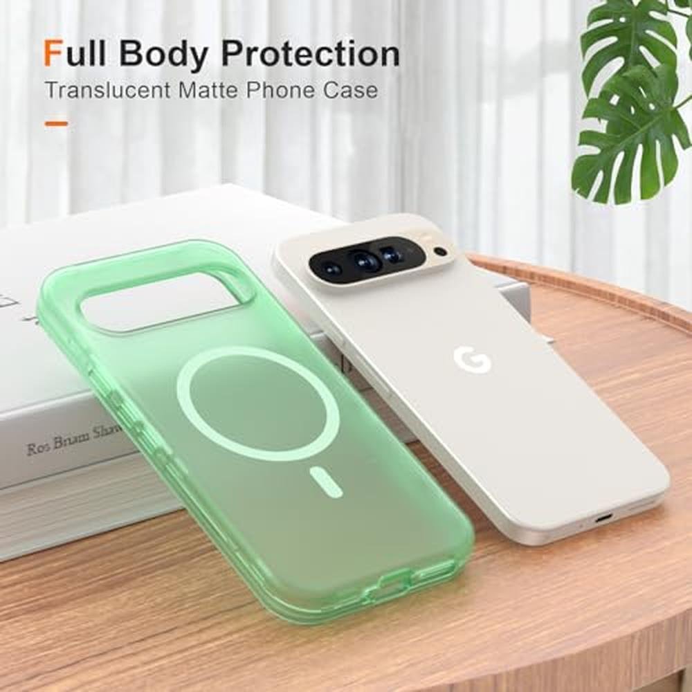 ANNSD for Google Pixel 9 Pro XL Case,Magnetic Matte Shockproof Cover,Translucent Full Body Protective Multilayer 3 in 1 Anti Drop Anti Scratch for Women Men(Green)