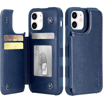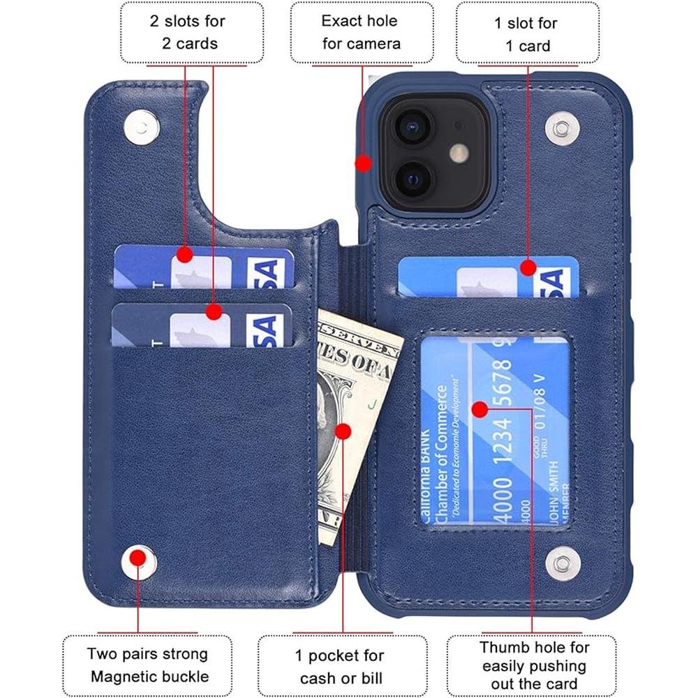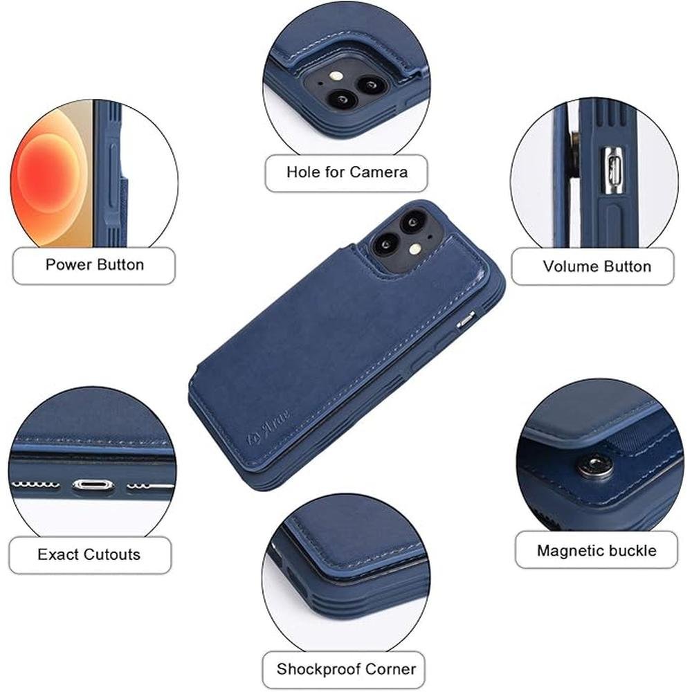 Arae Compatible for iPhone 12 Case and iPhone 12 Pro Case with Card Holder - Wallet Case with PU Leather Card Pockets Back Flip Cover for iPhone 12/12 Pro 6.1 inch - Blue