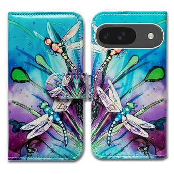 Bcov Case for Pixel 9,Cute Dragonfly Leather Flip Phone Case Wallet Cover with Card Slot Holder Kickstand Case for Google Pixel 9