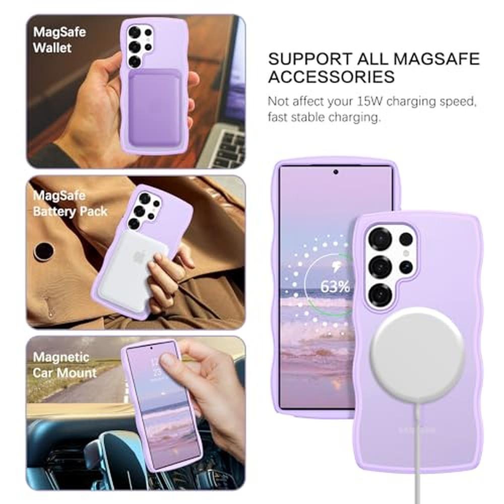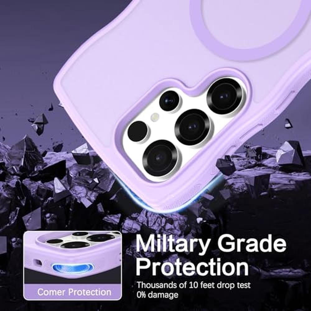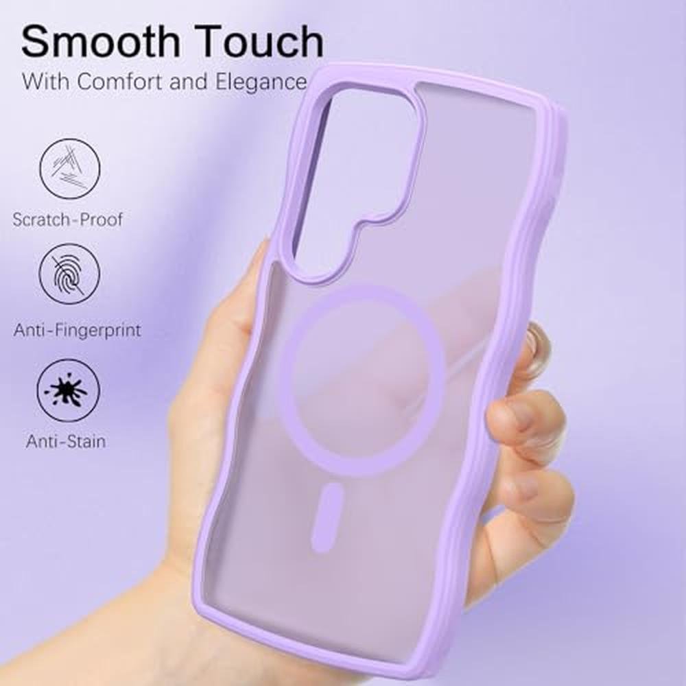 BENTOBEN for Samsung Galaxy S25 Ultra Case [Compatible with Magsafe] Cute Curly Wave Frame Translucent Matte Slim Magnetic Galaxy S25 Ultra Case Shockproof Women Men Protective Case Cover,Light Purple