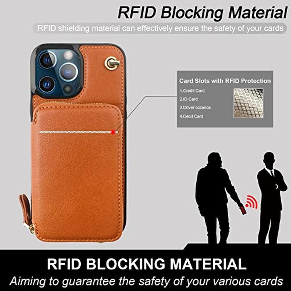 Bocasal Crossbody Wallet Case for iPhone 13 Pro Max, RFID Blocking Leather Purse Case with Card Holder, Protective Handbag Flip Cover with Zipper Wrist Strap Lanyard for Women 5G 6.7 Inch (Brown)