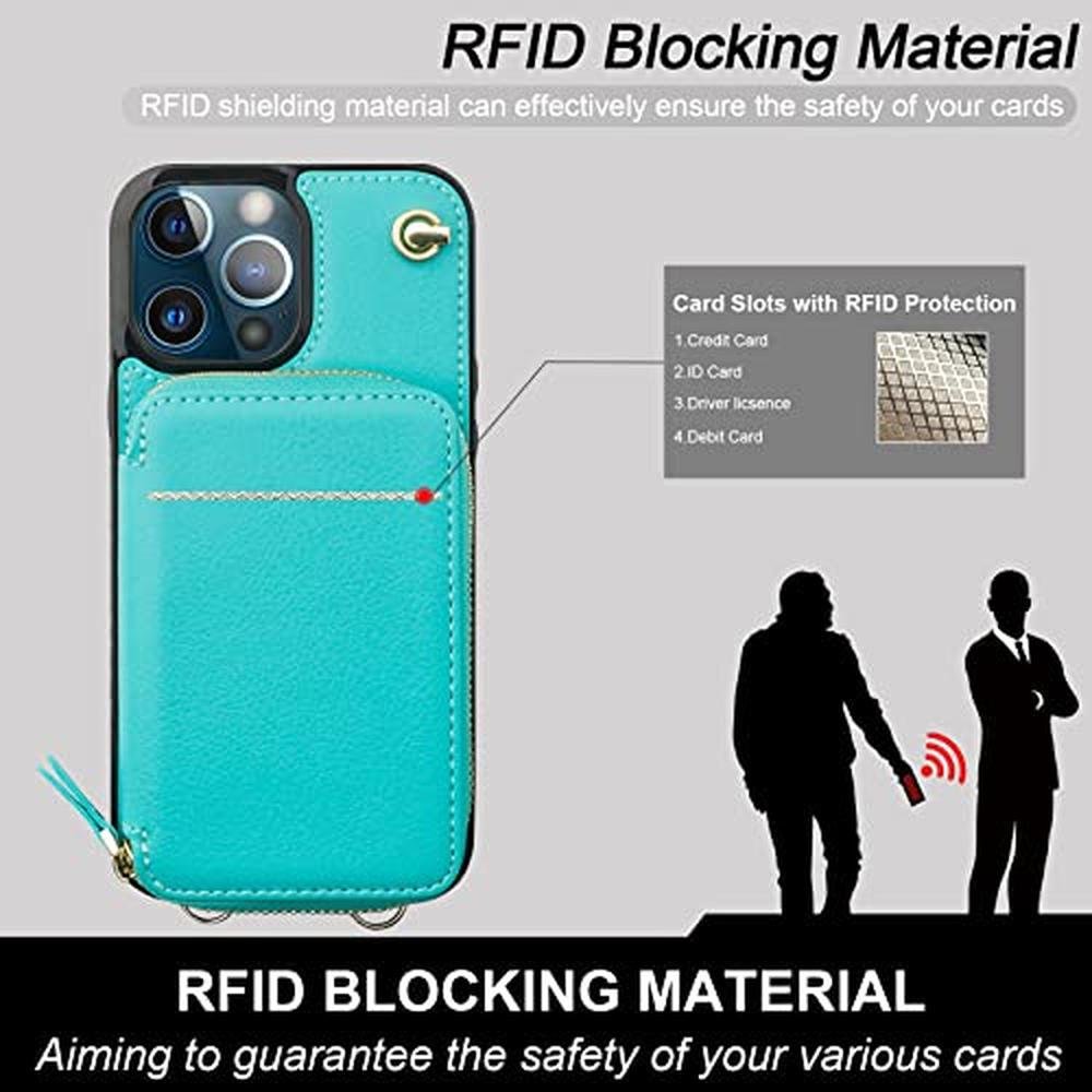 Bocasal Crossbody Wallet Case for iPhone 13 Pro Max, RFID Blocking Leather Purse Case with Card Holder, Protective Handbag Flip Cover with Zipper Wrist Strap Lanyard for Women 5G 6.7 Inch (Mint Green)
