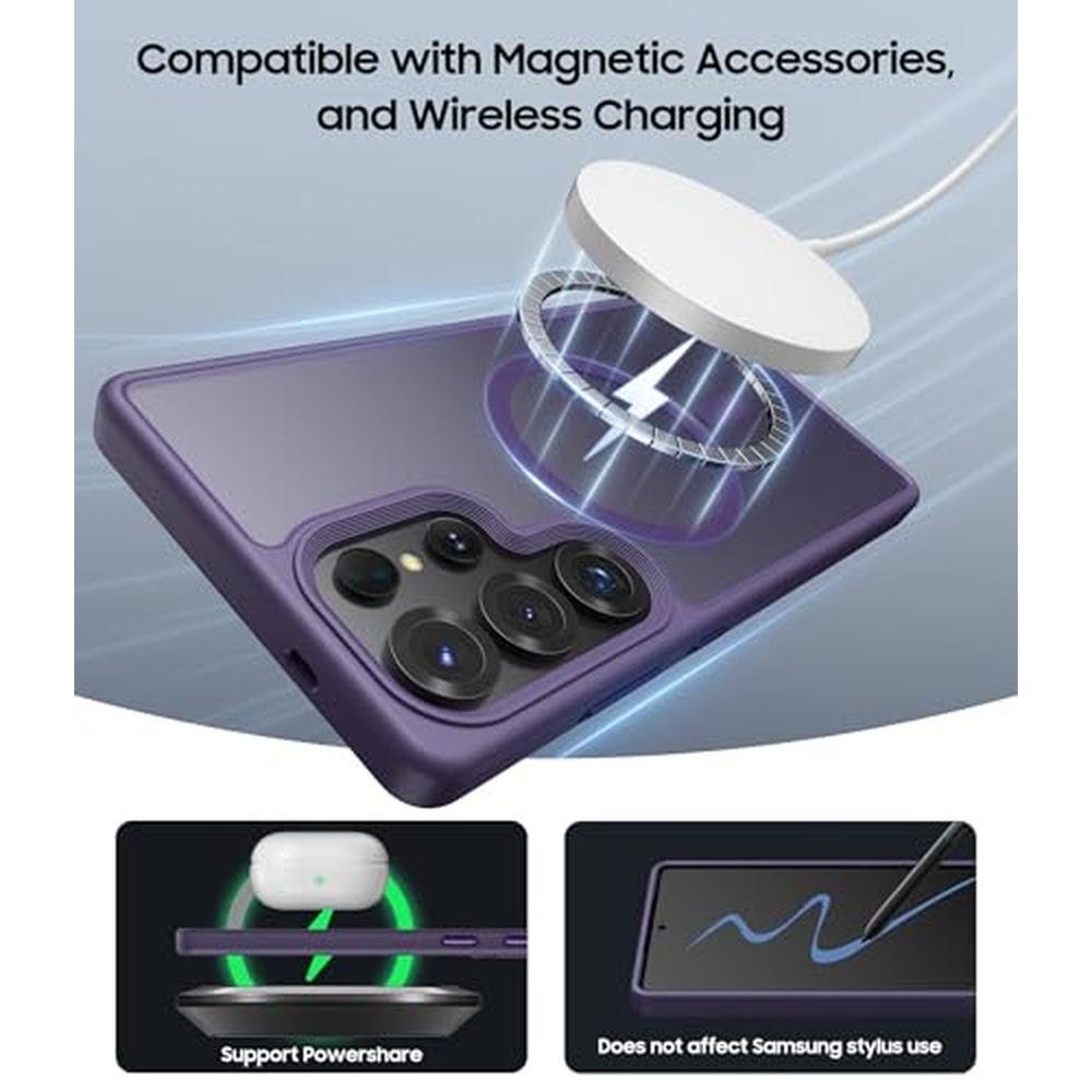 BXYJY for Samsung Galaxy S25 Ultra Magnetic Case, Slim Thin Compatible with MagSafe & Wireless Charging, Military Grade Drop, Translucent Rugged Silicone Men Women Case for Samsung S25Ultra 5g, Purple