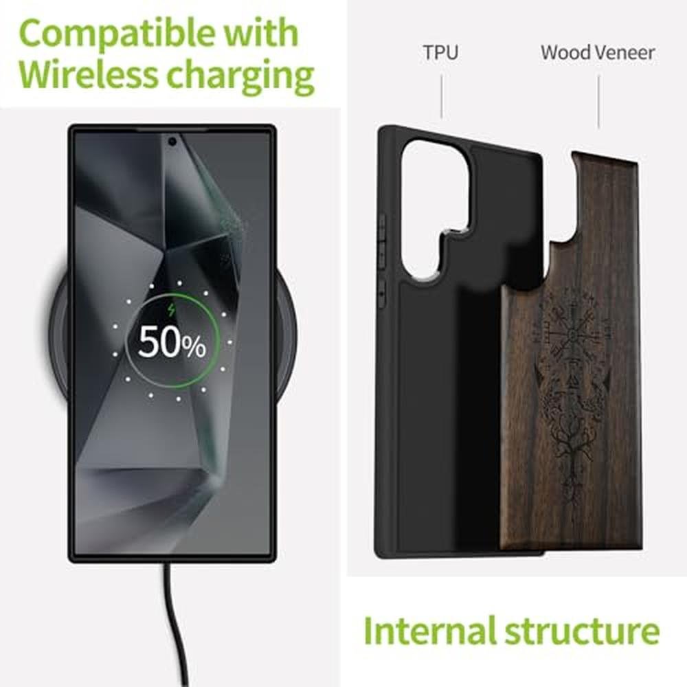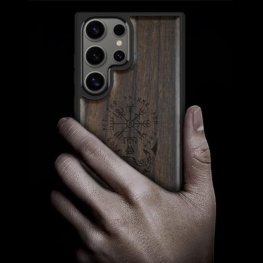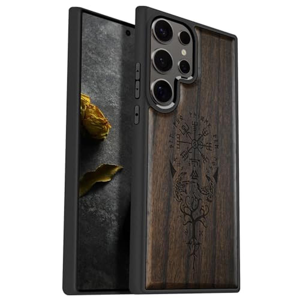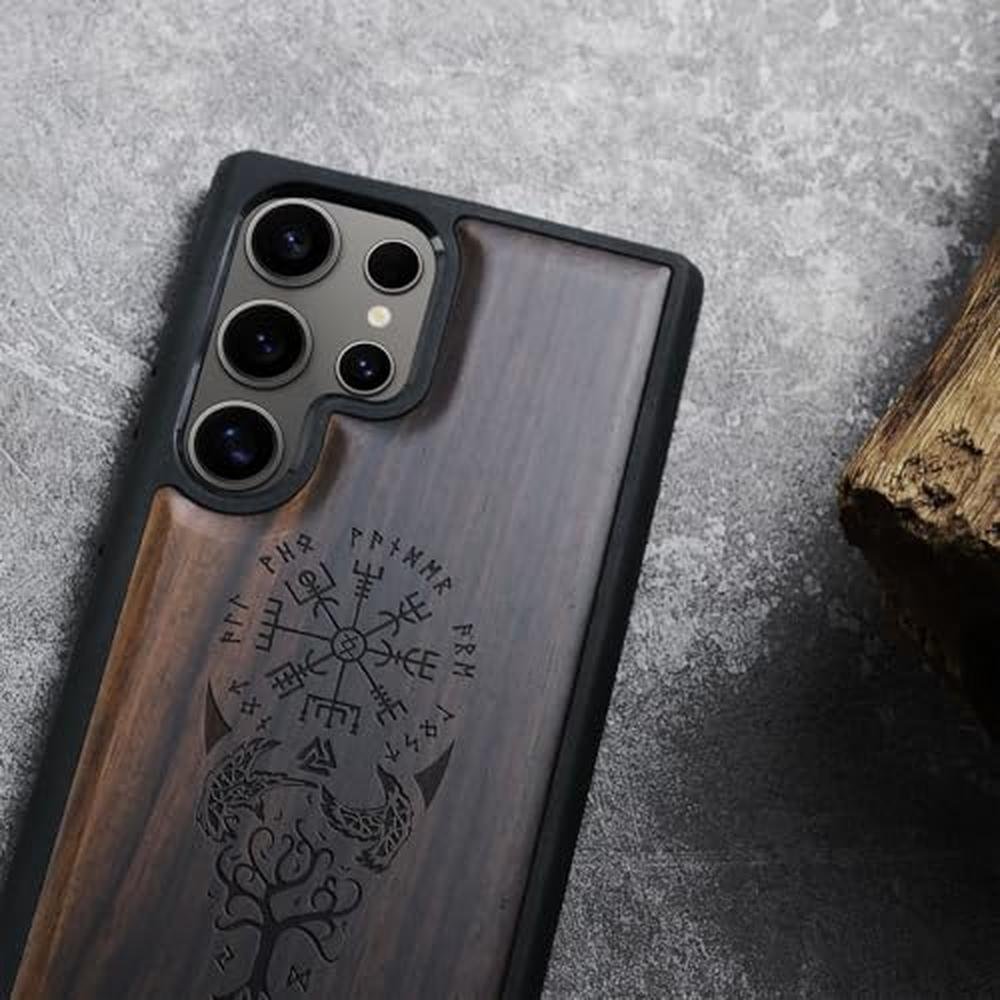 Carveit Wood Case for Galaxy S25 Ultra Case 2025 [Natural Wood & Black Soft TPU] Shockproof Protective Cover Unique Wooden Design Compatible with Samsung S25 Ultra (The Guiding Vegvisir-Blackwood)