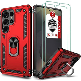 Experience the pinnacle of protection for your Samsung Galaxy S25 Ultra with our exquisite, premium case, expertly designed to provide unparalleled defense against scratches, drops, and everyday wear. Featuring a dual-layer hybrid TPU PC cover, this sophisticated case boasts a shockproof armor design and a magnetic ring kickstand for effortless car mounting. Additionally, it comes with a 2X tempered glass unlock screen protector, ensuring your 6.9" display remains pristine. As a perfect accessory for your Galaxy S25 Ultra, this red case is not only stylish but also functional, making it an essential item for anyone looking to safeguard their device. Whether you're waiting for the Galaxy S25 release date or have already gotten your hands on the latest Galaxy S25 Ultra, our case is the ultimate solution for premium protection.