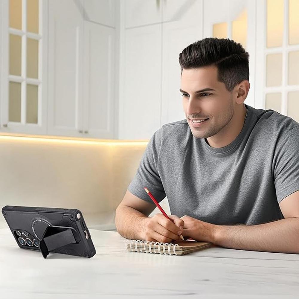 Discover the ultimate in convenience with our case's integrated ultra-strength magnets, ensuring seamless compatibility with magnetic car mounts and wireless charging systems. The reinforced cardholder securely stores essentials without adding bulk, and the instant-deploy kickstand transforms into an ergonomic viewing angle for multimedia or video calls. Every detail is crafted to elevate functional efficiency through intuitive design. With its innovative MagSafe compatible design and full camera protection, you can enjoy effortless wireless charging and crystal-clear photos.