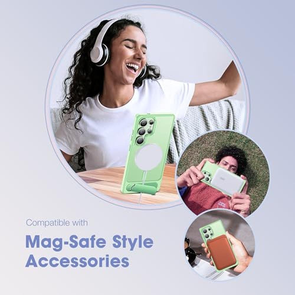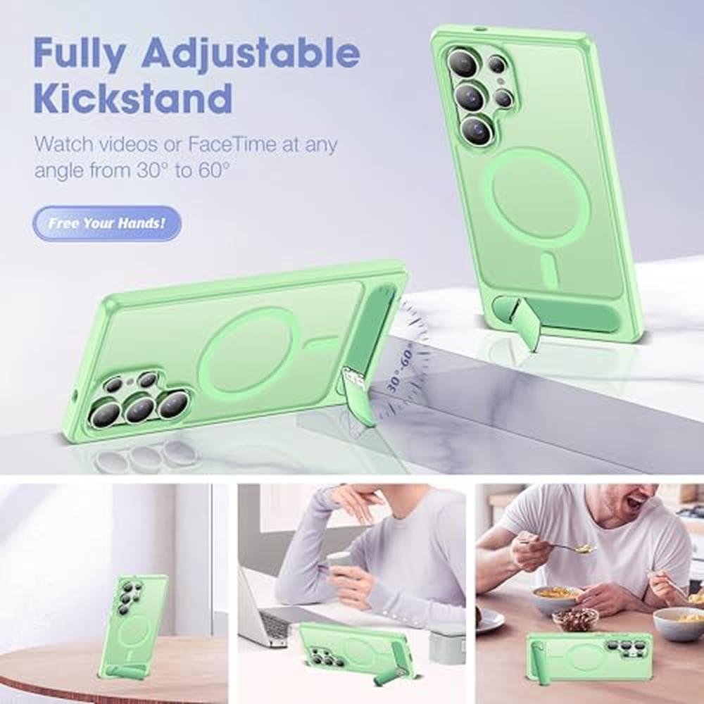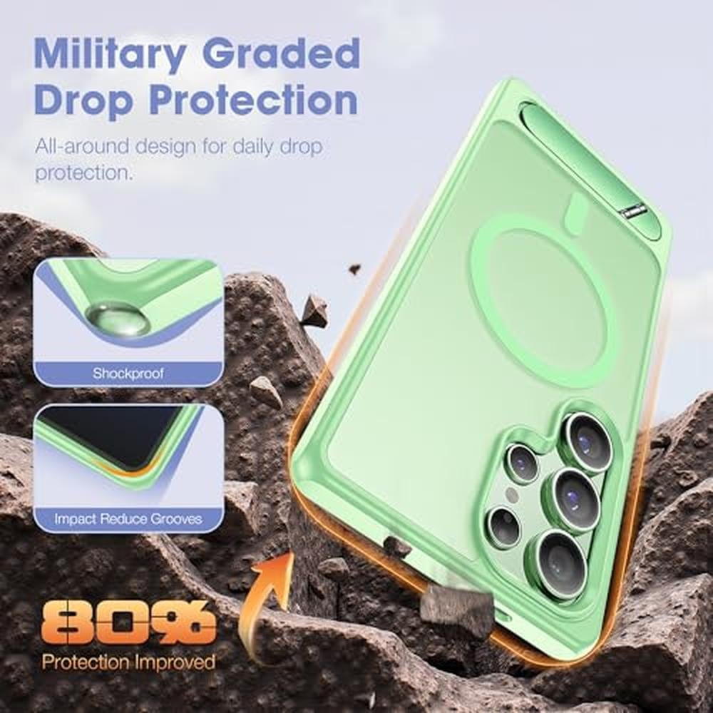 CASEROOKIE Compatible with Samsung Galaxy S25 Ultra Case [Built-in Invisible Kickstand][Compatible with Mag-Safe] Military Grade Shockproof Translucent Phone Case for S25 Ultra 6.9'',Green