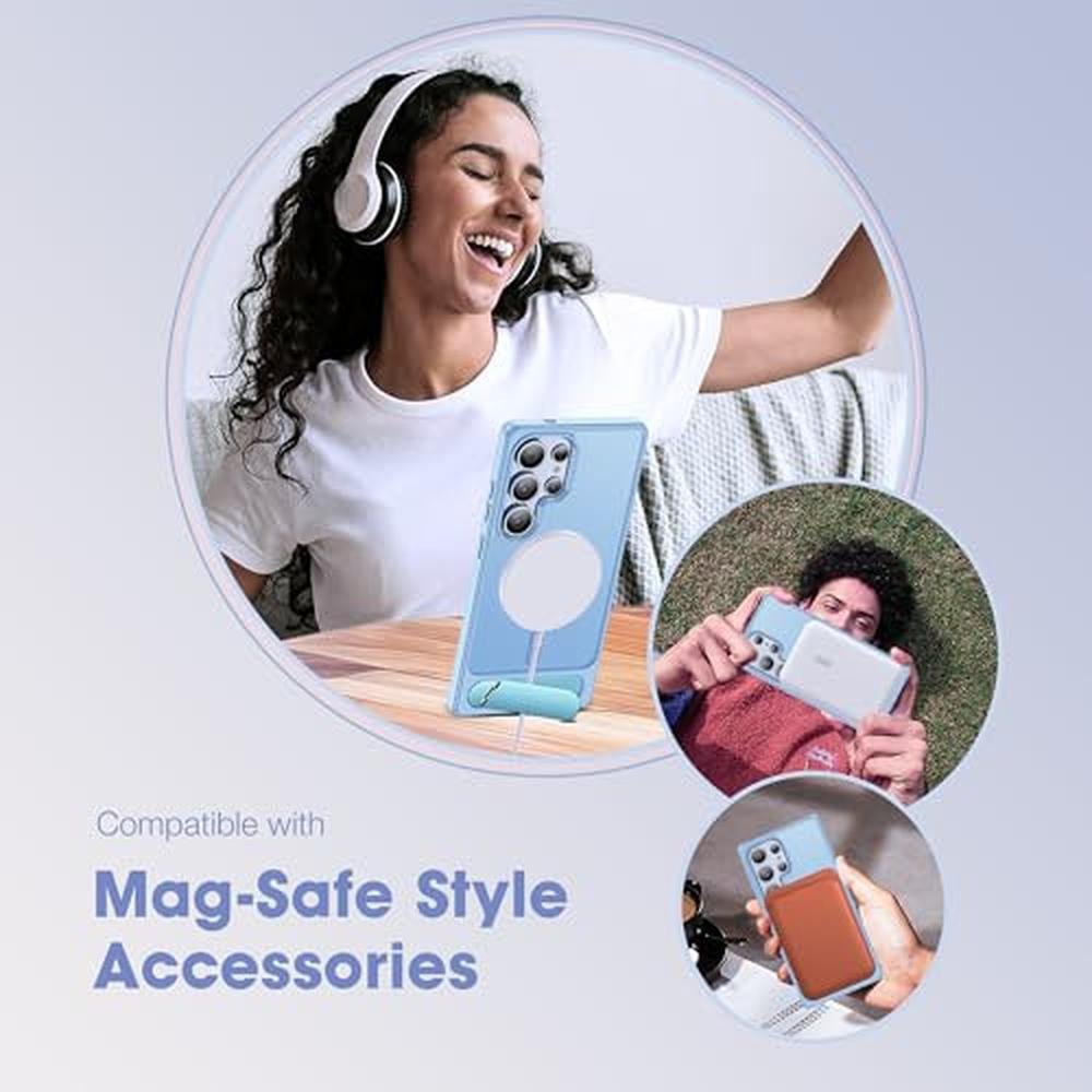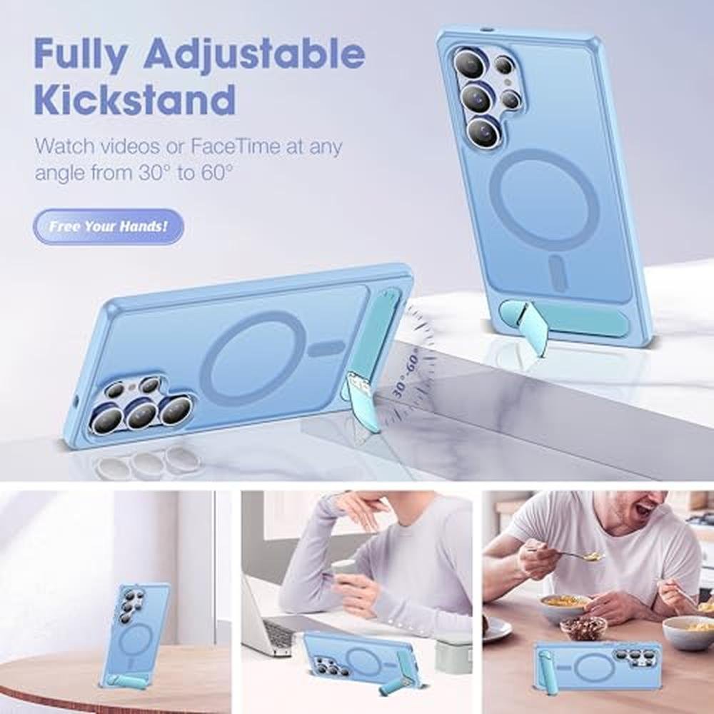 CASEROOKIE Compatible with Samsung Galaxy S25 Ultra Case [Built-in Invisible Kickstand][Compatible with Mag-Safe] Military Grade Shockproof Translucent Phone Case for S25 Ultra 6.9'',Light Blue