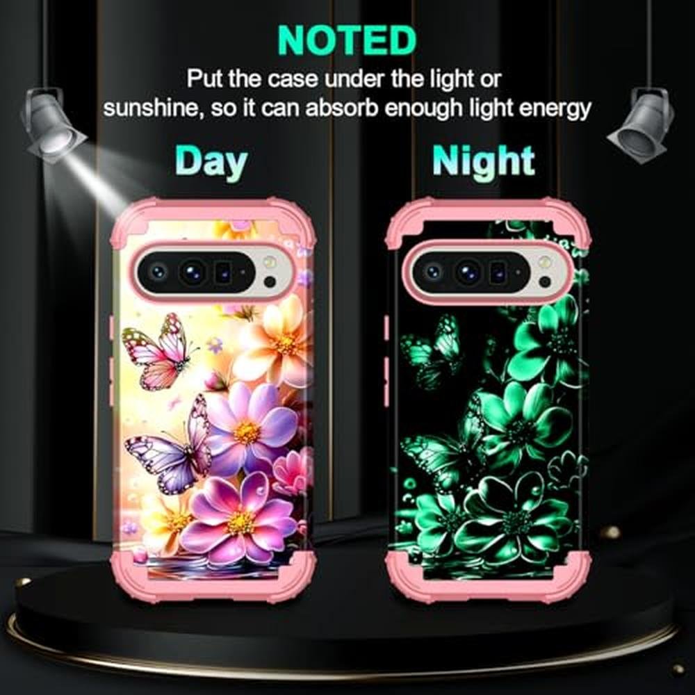 Casetego for Google Pixel 9 Pro XL Case,Glow in The Dark Three Layer Heavy Duty Sturdy Shockproof Protection Rugged Hard PC+Soft TPU Bumper Case for Google Pixel 9/9 Pro XL,Pink