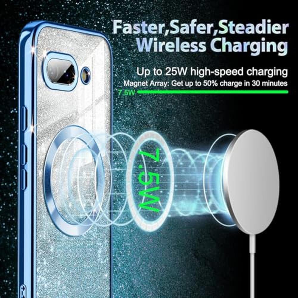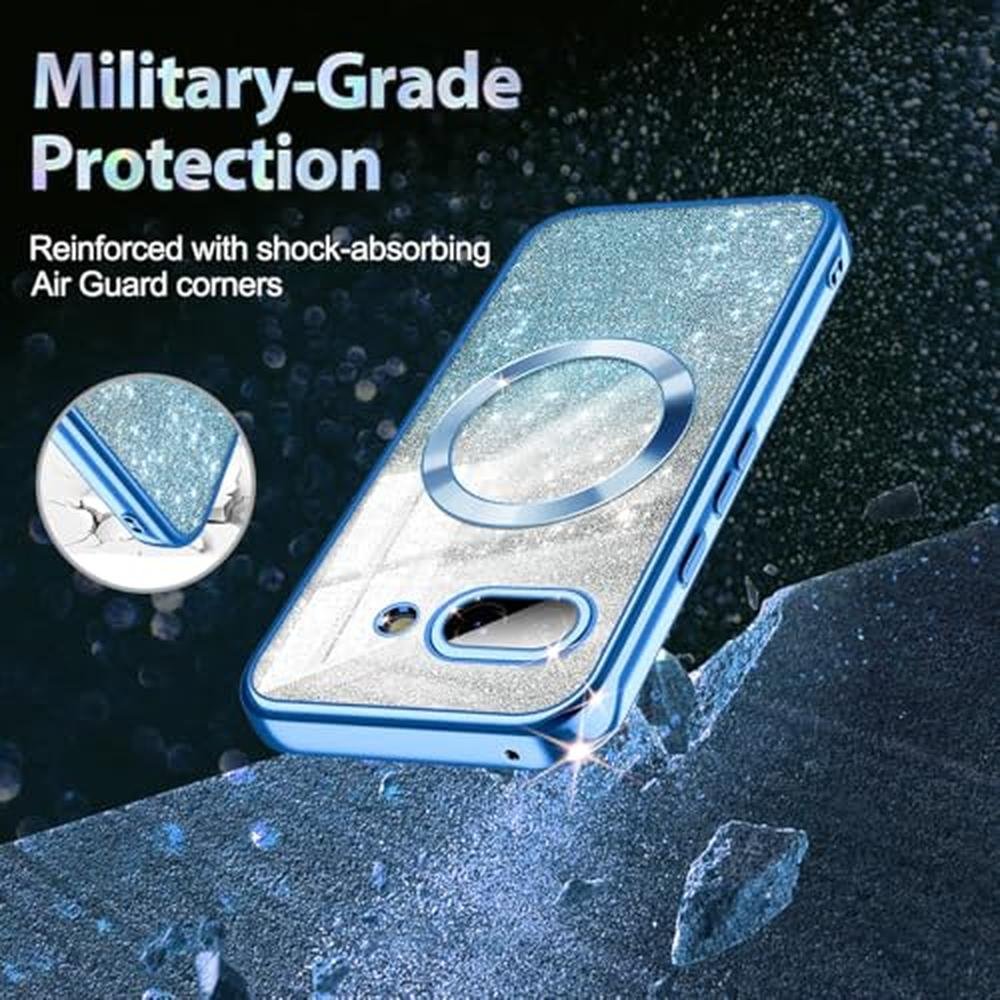 Casetego for Google Pixel 9a Case,Compatible with MagSafe,Glitter Sparkle Magnetic Plated Slim Shockproof Soft TPU Bumper Full Protection Case for Google Pixel 9a,Blue