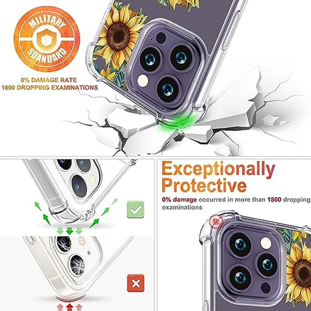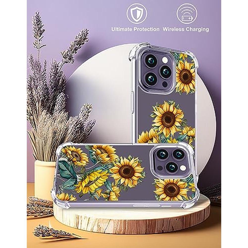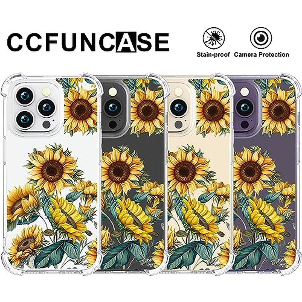 CCFUNCASE Compatible with iPhone 14 Pro Case Clear Cute for Women - Rugged Phone Cases Funda Protector Cover Skin (Yellow Sunflowers)