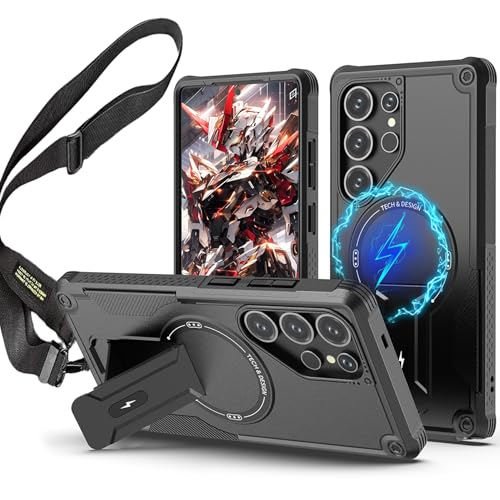 Phone case Compatible for Samsung Galaxy S25 UltraProduct Features:The bracket provides two comfortable viewing experiences, let go of your hands watch videos at any time.It supports official card holders wireless chargers or external batteries all of which can be matched with one anoter.Detachable Adjustable Strap,The shoulder strap is adjustable to customize the length for your perfect fit, and keeps your iPhone around without losing and let your hands free. Strap detaches easily to convert into a stand-alone cell phone case..