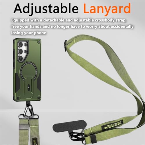 CCSmall for Samsung Galaxy S25 Ultra Case Crossbody with Kickstand, Military-Grade Armor Cover with Adjustable Shoulder Lanyard Strap Cell Phone Case for Samsung S25 Ultra DJ Green