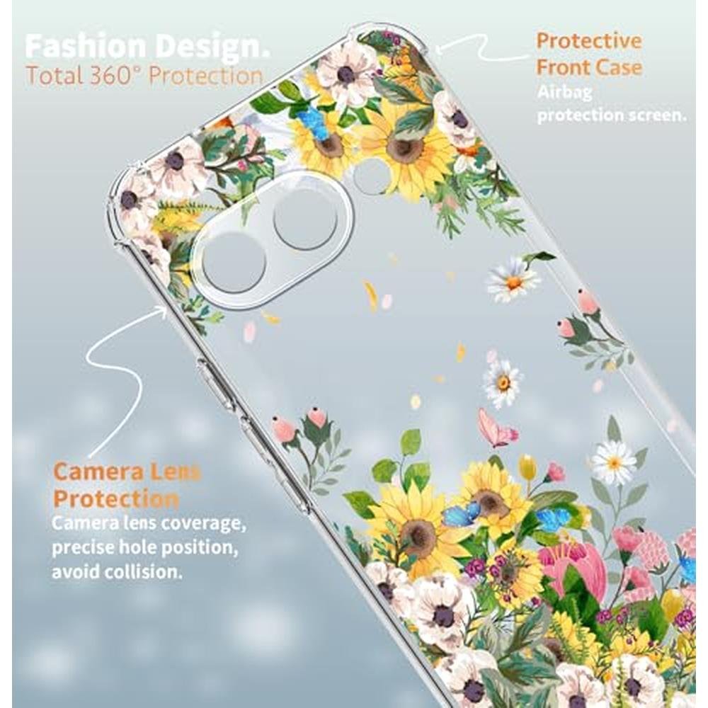CLATUK for Google Pixel 9A Case Camera Lens Protector, [Flowers Slim]+[Anti-Drop Shockproof Protective] Soft TPU Women Stylish Pixel 9A Phone Covers 2025 6.285 InchFlowers Sea