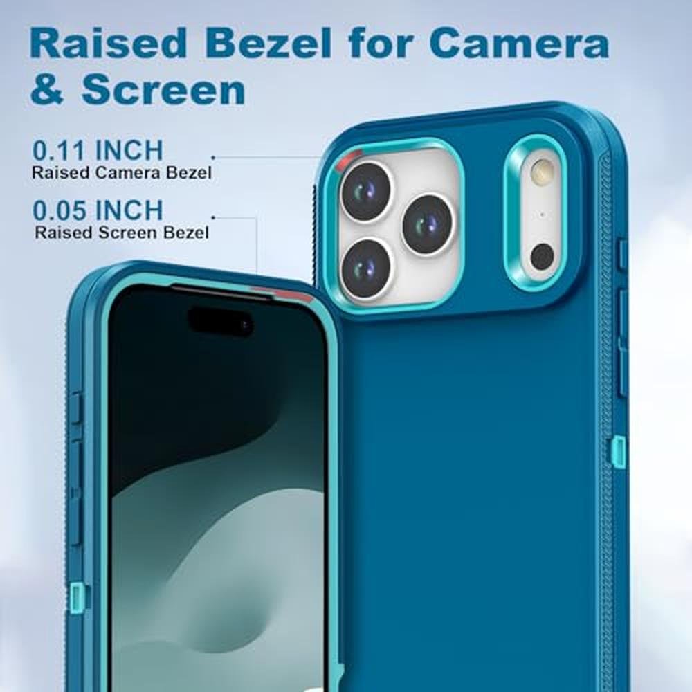 - Screen & Camera Lens Protection: Engineered to meet heavy-duty protection standards, this case can withstand drops from heights of up to 15FT military grade protection while keeps light and slim. The shock-absorbing TPU layer dissipates impact force instantly upon collision, while the reinforced corner bumpers add extra cushioning. Raised bezels offer extra protection for you phone screen and camera lens, keeping your iPhone 17 Pro Max safe even in accidental drops, slips, or falls.