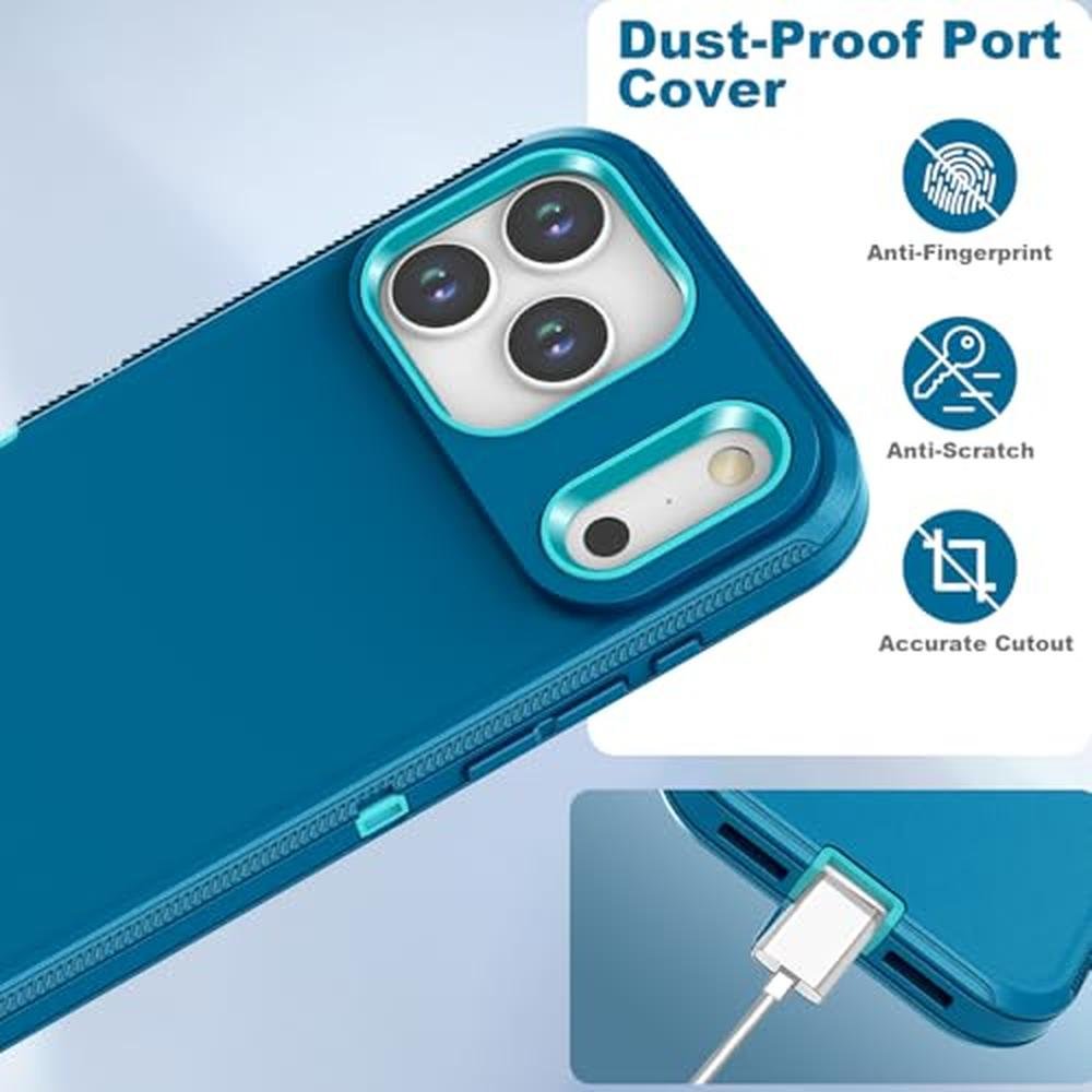 Designed for iPhone 17 Pro Max Case, [Without Screen Protector] Shockproof/Dust/Drop Proof 3-Layer Full Body Protection Rugged Heavy Duty Phone Case Cover for iPhone 17 Pro Max 6.9", Turquoise