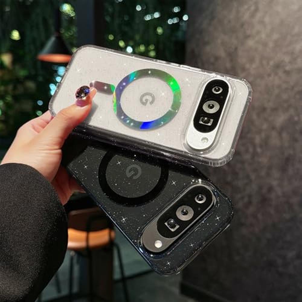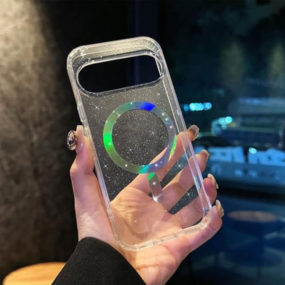 Eiyikof Compatible with Google Pixel 9 Pro XL Magnetic Case with Bling Sparkly Clear Back,Luxury Shockproof Protection and Slim Thin for Google Pixel 9 Pro XL Cute Case for Women Girls-Transparent A