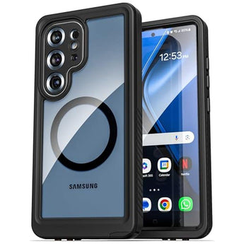 Titan Waterproof Case - Samsung Galaxy S25 Ultra (Compatible with MagSafe/Qi2) Built to survive any conditions. Elevate your phone's defense with the fully submersible IP68-rated Titan Waterproof Phone Case for unparalleled protection against the elements. With a built-in screen protector, sealed port covers and a shock-resistant build, this case can withstand water, dirt, or mud and has been 15FT drop tested to provide you peace of mind when you need it most. Rugged reliability meets modern functionality the ultimate safeguard for your device. Locking Microphone Cover Say goodbye to muffled phone calls. The integrated mic cover opens effortlessly for phone calls or voice commands. When water protection takes priority, simply snap it shut. The best part? It locks securely in both open and closed positions, providing you with uninterrupted functionality and uncompromised security. Compatible with MagSafe/Qi2 Enjoy the convenience and simplicity of the MagSafe ecosystem. Seamlessly connect to MagSafe/Qi2 wallets, grips, mounts and more. KEY FEATURES: Fully enclosed 2 piece design IP68 submersible rating 15FT drop tested Compatible with MagSafe/Qi2 accessories Locking microphone cover Built-in screen protector