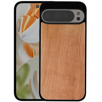 FEJUC Case Compatible with Google Pixel 9 Pro XL, Natural Real Wood & TPU Bumper, Durable Shockproof Hybrid Cover, Protective Wooden Case for Pixel 9 Pro XL (Cherrywood)