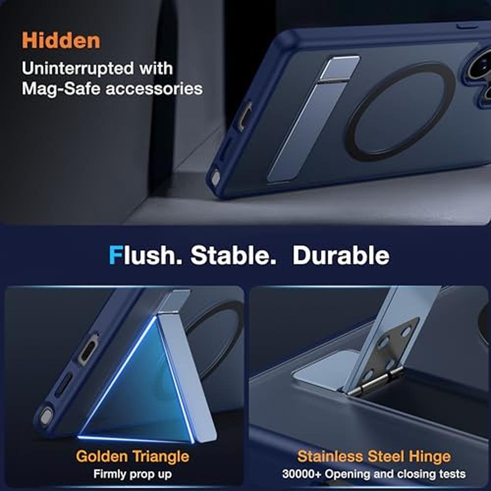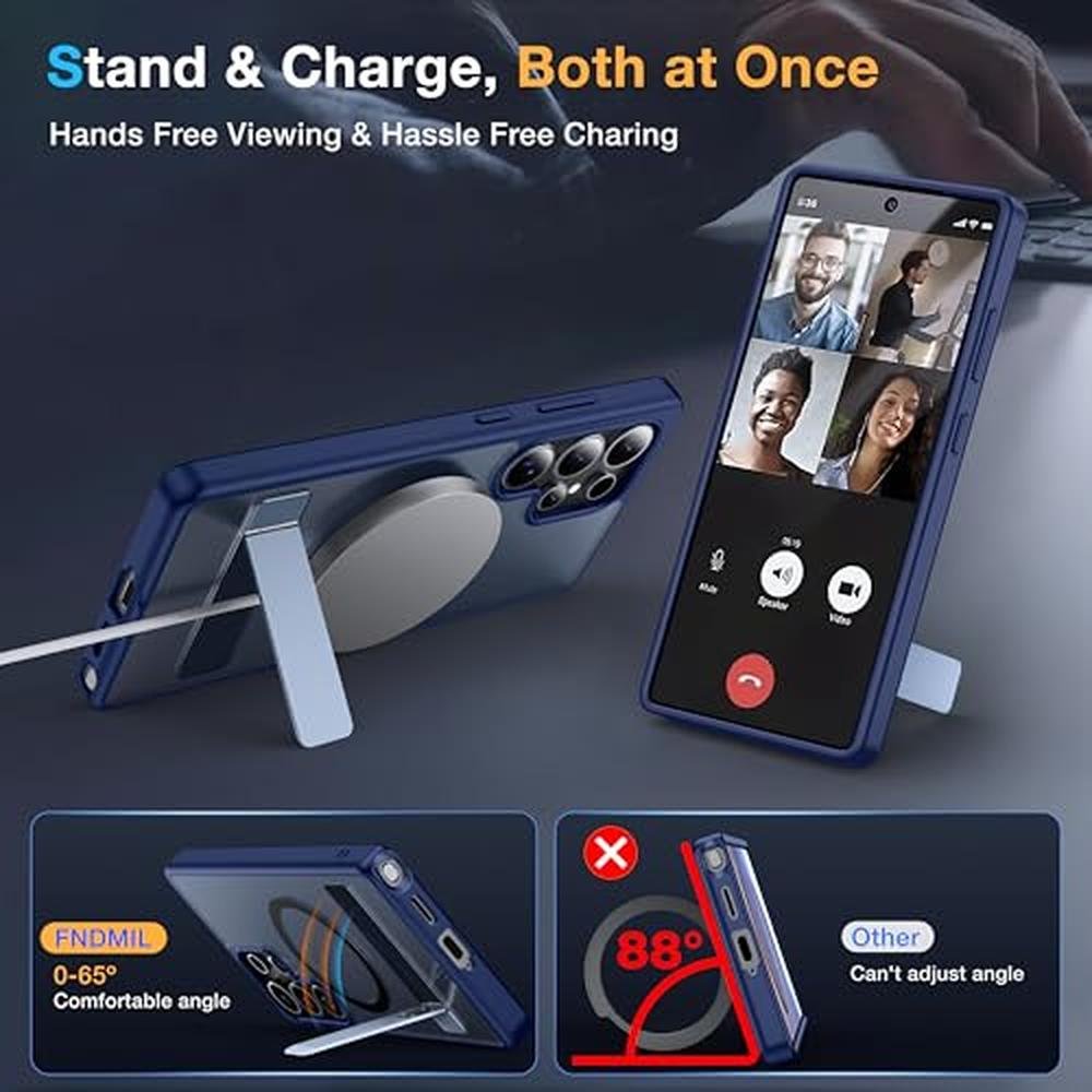 • MAGSTAND Magic 2 in 1FNDMIL has been pursuing to create an excellent magnetic protective case for Samsung users. This time, the Samsung Galaxy S25 Ultra Case with stand provides an advanced technology solution that combines beauty, protection and convenience, allowing you to experience hands-free and multi-angle tilting while uninterrupted wireless charging. The flush folding design does not add any extra bulk to the surface, you can't even feel it's there