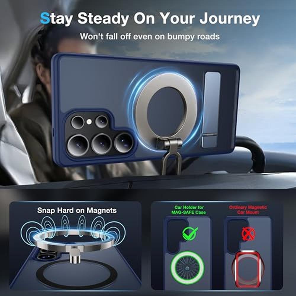 • Magic Magnetic LockThis Samsung Galaxy S25 Ultra Phone Case uses cutting-edge Halbach array technology and top-level 38 N52SH permanent magnets to provide amazing stability and up to 18N of safe magnetic force, enjoy a stronger connection experience and faster wireless charging. It is seamlessly compatible with all the Mag-Safe accessories, such as Mag-Safe car mounts. The strong suction keeps your phone stable even when driving on bumpy roads