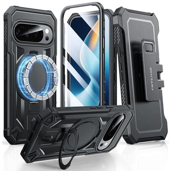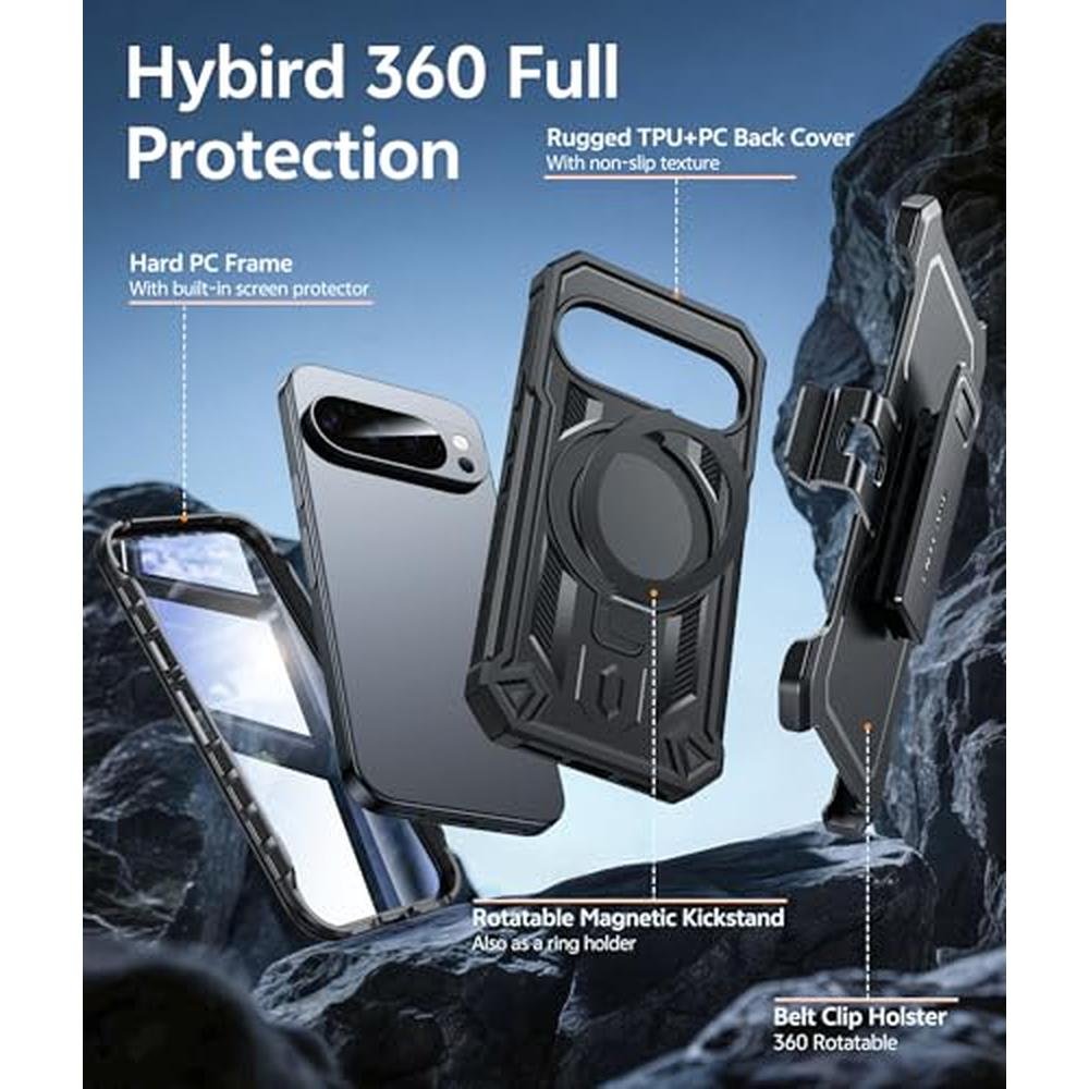 Compatibility: ONLY FIT for Google Pixel 10/ 10 Pro & Google Pixel 9/ 9 Pro Features: 1.Full Body Drop Protection: Double-layer structure, fully protect your Google Pixel 10/ 10 Pro/ 9/ 9 Pro 2. Touch-sensitive Built-in Screen Protector: In order to ensure that the fingerprint is sensitive, please RE-REGISTERED UNLOCK FINGERPRINTS after installing the Google Pixel 10/ 10 Pro/ 9/ 9 Pro 3. Comfortable Grip: Soft-touch finishes for a comfortable grip experience and added scratch resistance 4. Raised Edges: Designed with a lifted bezel on the screen and camera lens can protect your Google Pixel 10/ 10 Pro/ 9/ 9 Pro from daily scratches 5. Built-in Magnetic Ring Kickstand: Equipped with a magnetic stand design, enabling wireless charging without removing the case. The finger loop enhances grip, offering hands-free convenience and superior usability 6. 360 Rotatable Belt-Clip:Detachable swivel belt clip holster for convenient, hands-free, pocket-free carrying 7. Precise Cutouts: All holes are precisely aligned, bringing the ultimate comfortable experience 8. High Warranty: We specialize in the manufacture and sale of high-quality cellphone cases. We are committed to producing high-quality multi-function phone cases that are stylish, drop-proof, dust-proof, and scratch-resistant Package Include: 1x Protective Google Pixel 10/ 10 Pro/ 9/ 9 Pro Case with Built-in Screen Protector 1x 360 Rotatable Belt-Clip