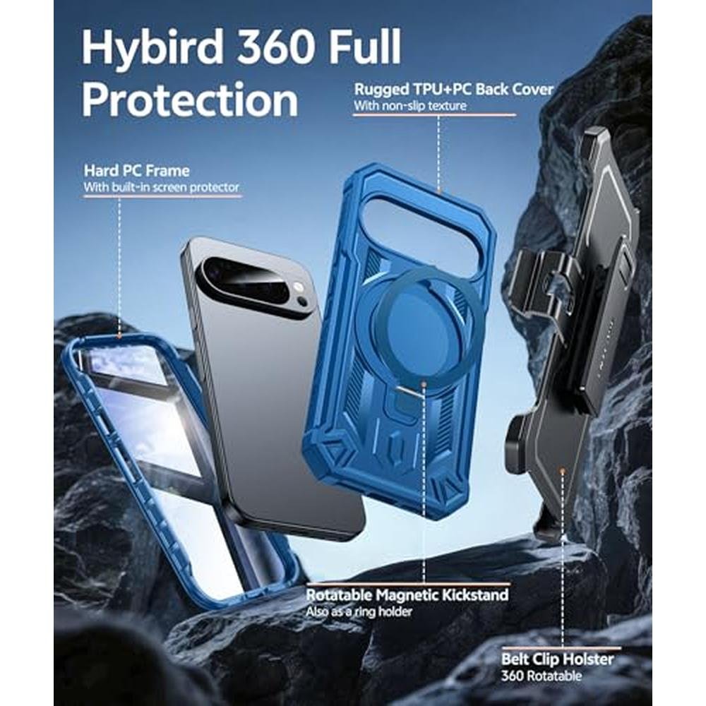 Compatibility: ONLY FIT for Google Pixel 10/ 10 Pro & Google Pixel 9/ 9 Pro Features: 1.Full Body Drop Protection: Double-layer structure, fully protect your Google Pixel 10/ 10 Pro/ 9/ 9 Pro 2. Touch-sensitive Built-in Screen Protector: In order to ensure that the fingerprint is sensitive, please RE-REGISTERED UNLOCK FINGERPRINTS after installing the Google Pixel 10/ 10 Pro/ 9/ 9 Pro 3. Comfortable Grip: Soft-touch finishes for a comfortable grip experience and added scratch resistance 4. Raised Edges: Designed with a lifted bezel on the screen and camera lens can protect your Google Pixel 10/ 10 Pro/ 9/ 9 Pro from daily scratches 5. Built-in Magnetic Ring Kickstand: Equipped with a magnetic stand design, enabling wireless charging without removing the case. The finger loop enhances grip, offering hands-free convenience and superior usability 6. 360 Rotatable Belt-Clip:Detachable swivel belt clip holster for convenient, hands-free, pocket-free carrying 7. Precise Cutouts: All holes are precisely aligned, bringing the ultimate comfortable experience 8. High Warranty: We specialize in the manufacture and sale of high-quality cellphone cases. We are committed to producing high-quality multi-function phone cases that are stylish, drop-proof, dust-proof, and scratch-resistant Package Include: 1x Protective Google Pixel 10/ 10 Pro/ 9/ 9 Pro Case with Built-in Screen Protector 1x 360 Rotatable Belt-Clip