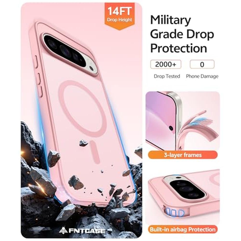 FNTCASE for Google Pixel 10 & 10 Pro Case: for Pixel 9 & 9 Pro Case | Magnetic Matte Shockproof Rugged Translucent Phone Cover - Military Grade Drop Proof Sturdy Slim Protective Cases (6.3 inch/Pink)
