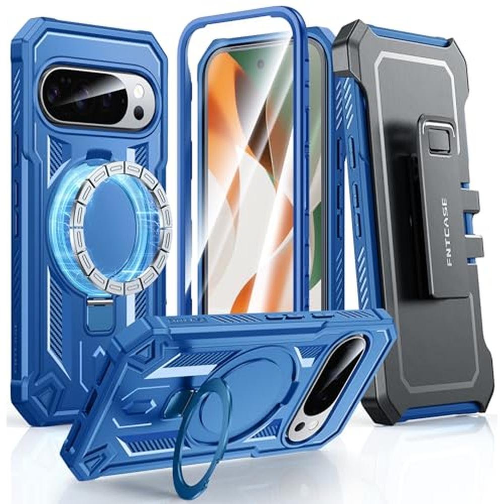 FNTCASE for Google Pixel 10-Pro-XL Case: for 9 Pro XL Case with Ring Holder Magnetic Kickstand & Belt-Clip Holster Military Grade Shockproof Protective Rugged Cell Phone Cover 5G - 6.8 Inch (Blue)