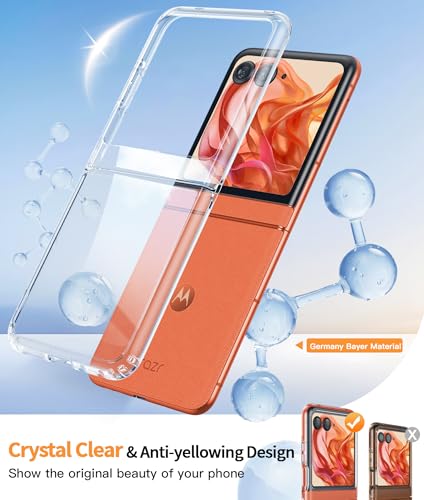 - Crystal Clear Yellowing Resistant: The Motorola Razr 2025 / Moto Razr 60 case use Nano antioxidant layer effectively resists stains and sweat,keeping the case clear,can maximize the display of your phone's color