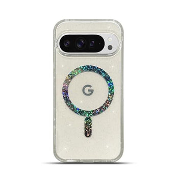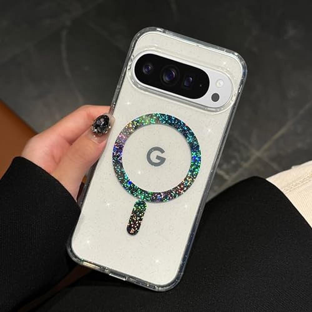 for Google Pixel 9/9 Pro Case 6.3" Compatible with Magsafe Magnetic Bling Glitter Clear Shiny Sparkle Holographic Laser Star Luxury Military-Grade Shockproof Protect Soft Phone Cover for Women